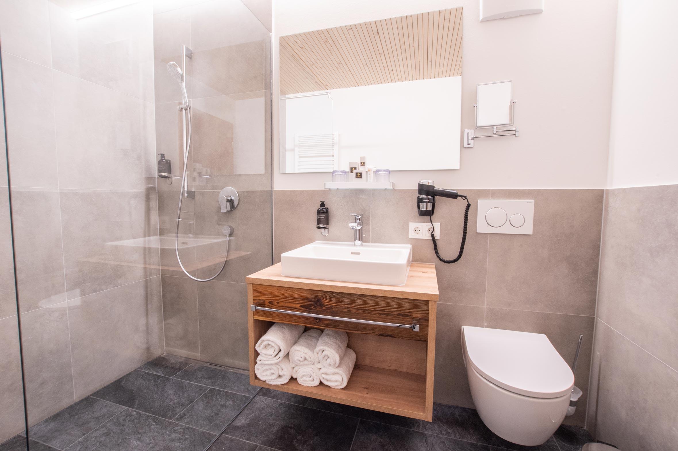 • Badezimmer mit Dusche/WC, Fön, Bademänteln & Pflegeprodukten