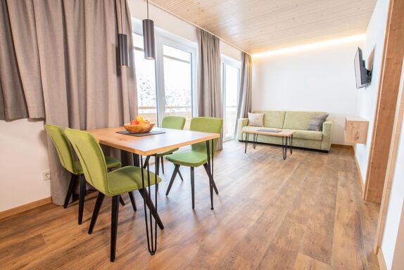 Das Chalet konzentriert sich auf das Wesentliche – naturbelassene Materialien, schlichte Möbel und ein modernes Bad. Die luftige Raumgestaltung macht es perfekt für Familien. Vom großen Balkon aus genießt man den Blick in Richtung Musberg und Kakenköpfe.