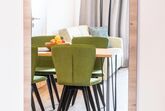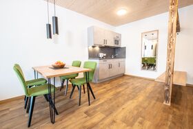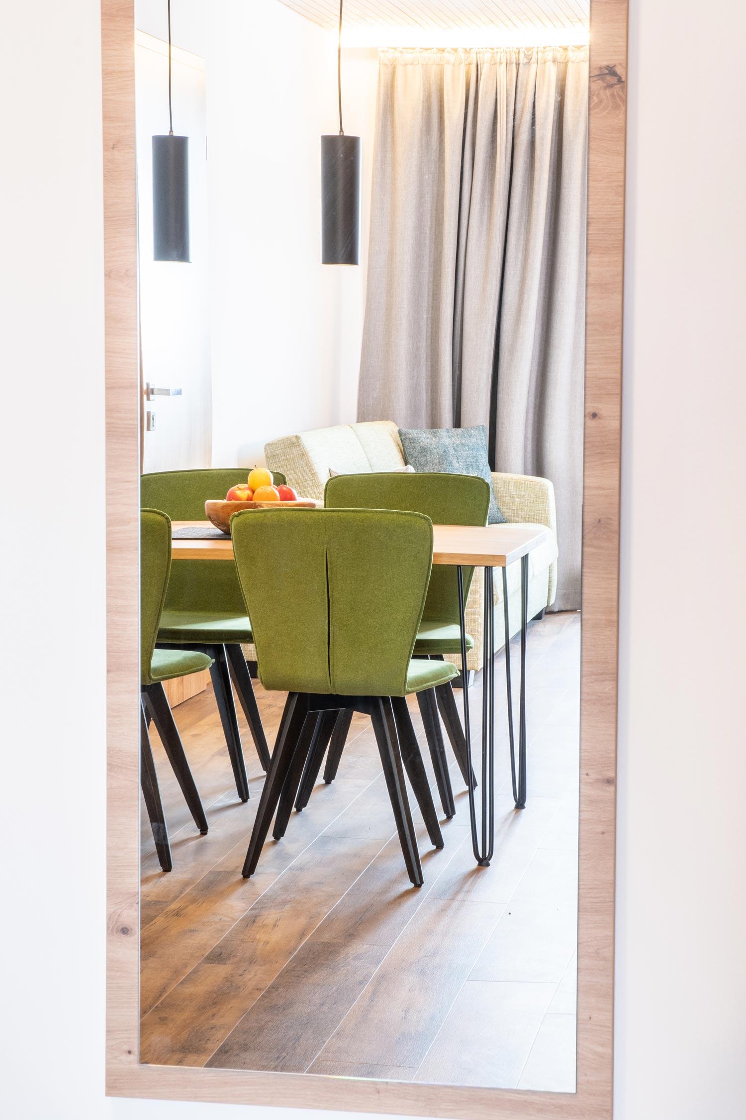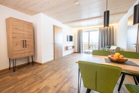Die Moorbirke-Chalets sorgen mit warmen Farben für eine gemütliche Atmosphäre. Auf dem Balkon kann man den Blick über die Kakenköpfe und den Osterberg schweifen lassen.