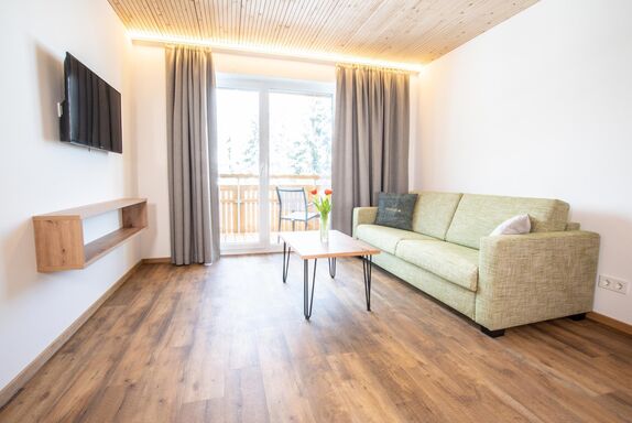 • Wohnzimmer mit ausziehbarer Schlafcouch und Sat-TV
