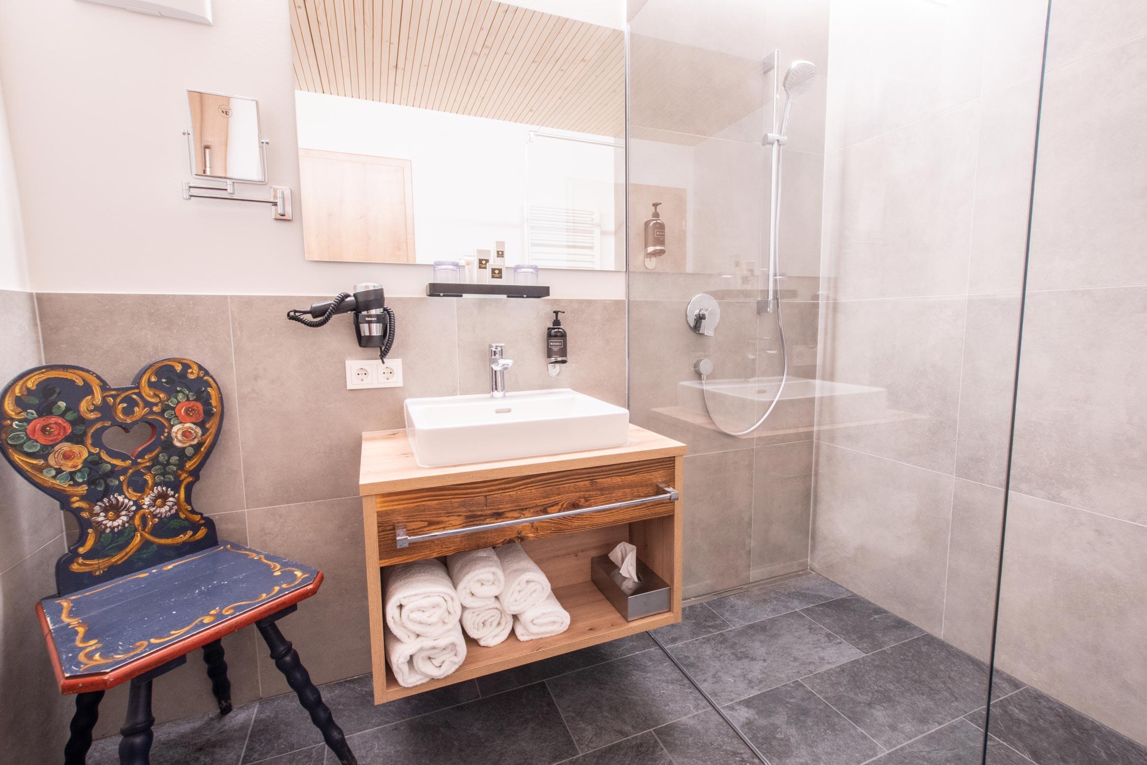 • Badezimmer mit Dusche, Fön, Bademänteln & Pflegeprodukten
