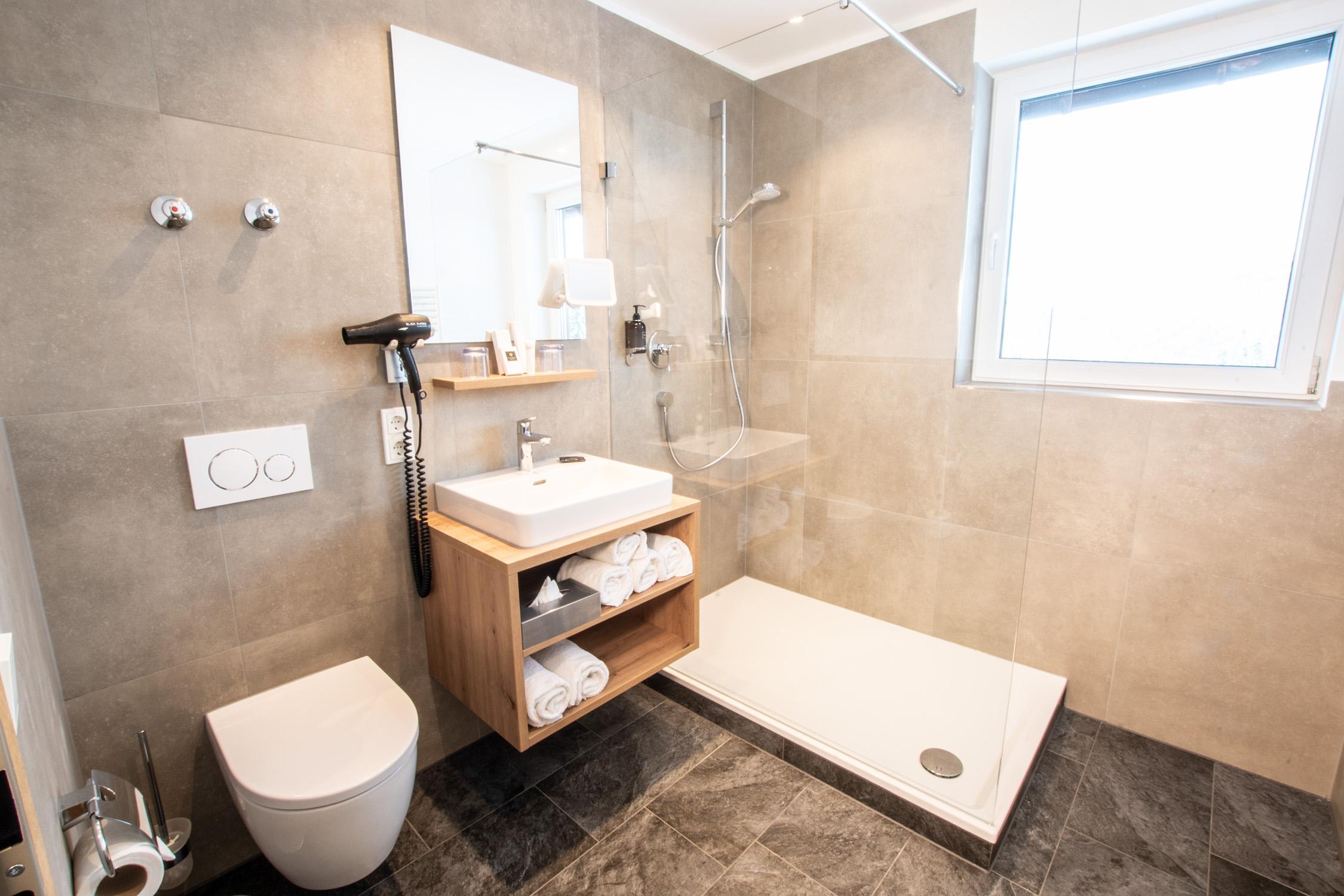 • Badezimmer mit Fenster, Dusche/WC, Fön, Bademänteln & Pflegeprodukten