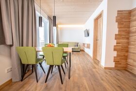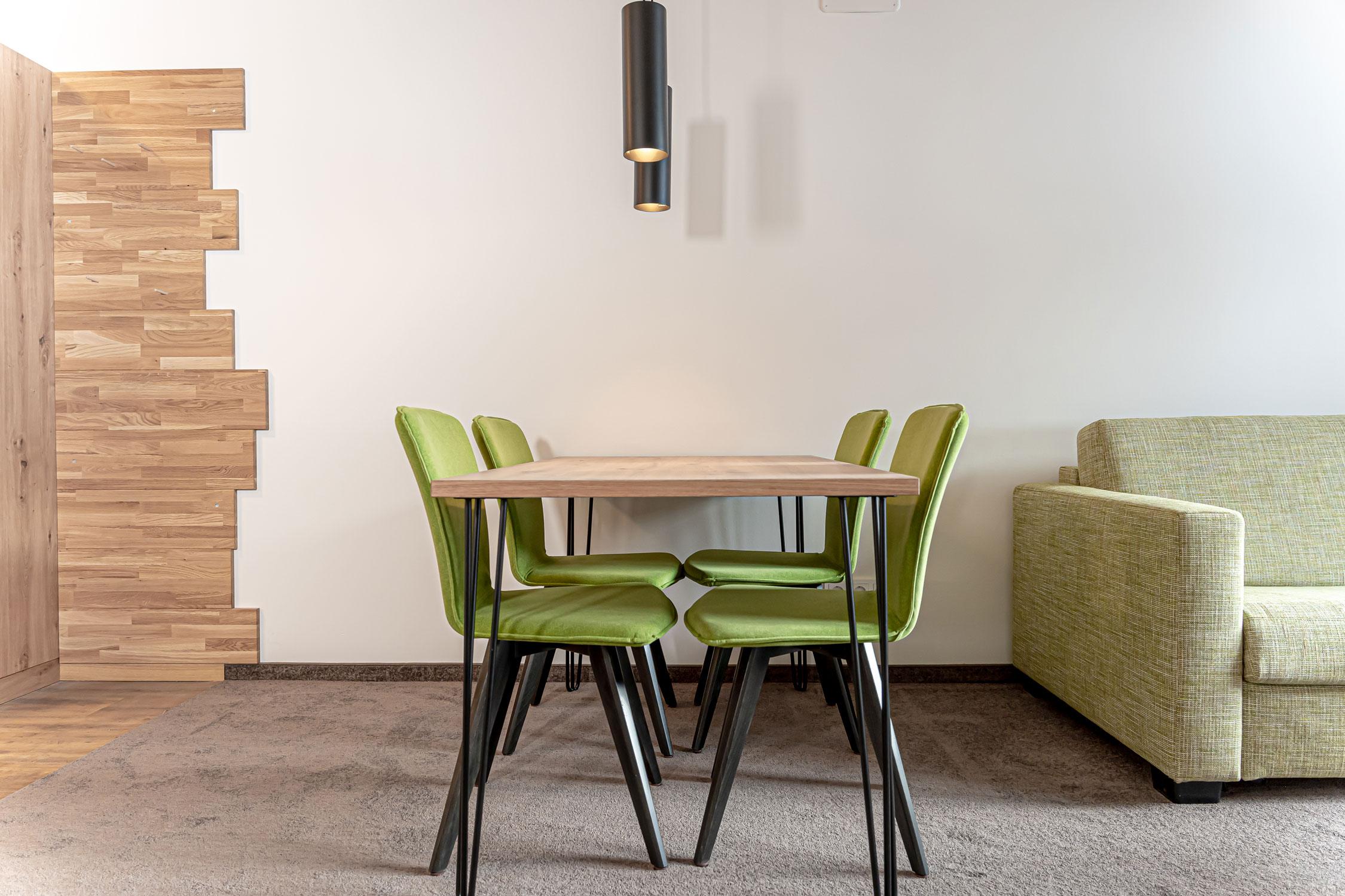 Das Chalet konzentriert sich auf das Wesentliche – naturbelassene Materialien, schlichte Möbel und ein modernes Bad. Die luftige Raumgestaltung macht es perfekt für Familien. Vom großen Balkon aus genießt man den Blick in Richtung Musberg und Kakenköpfe.