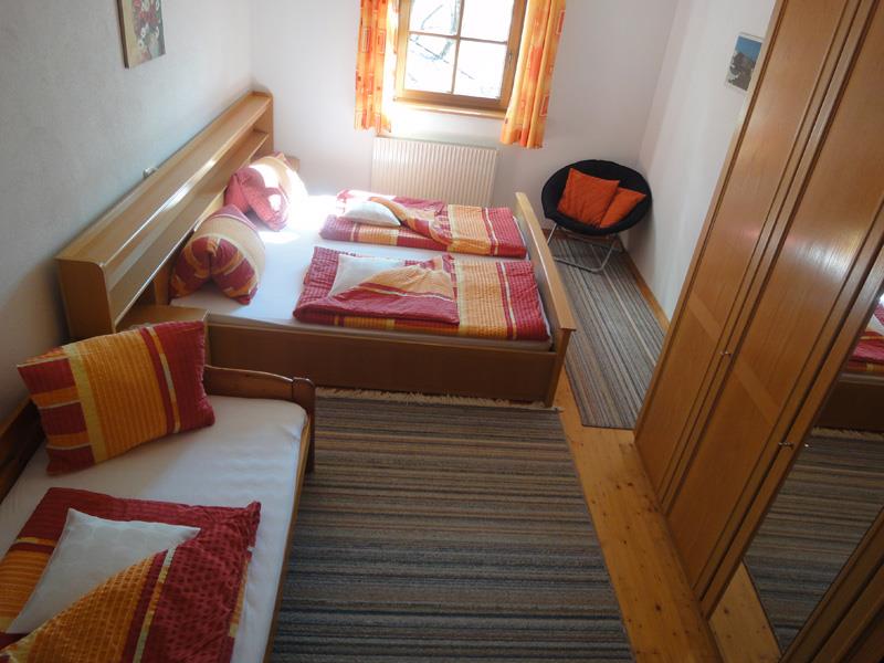 Beide Ferienwohnungen liegen im Parterre (3 Stufen bis zur Wohnung). Sie verfügen über 1 Schlafzimmer für 3 Personen, 1 Wohnküche und Du/WC. Im Garten stehen Liegestühle und Sonnenschirme bereit.