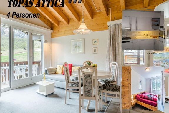 3-Zimmer-Wohnung Topas 21 im 3. Stock mit 180° Panorama bietet Platz für 4 Personen. Die Ferienwohnung ist gut eingerichtet und bietet: