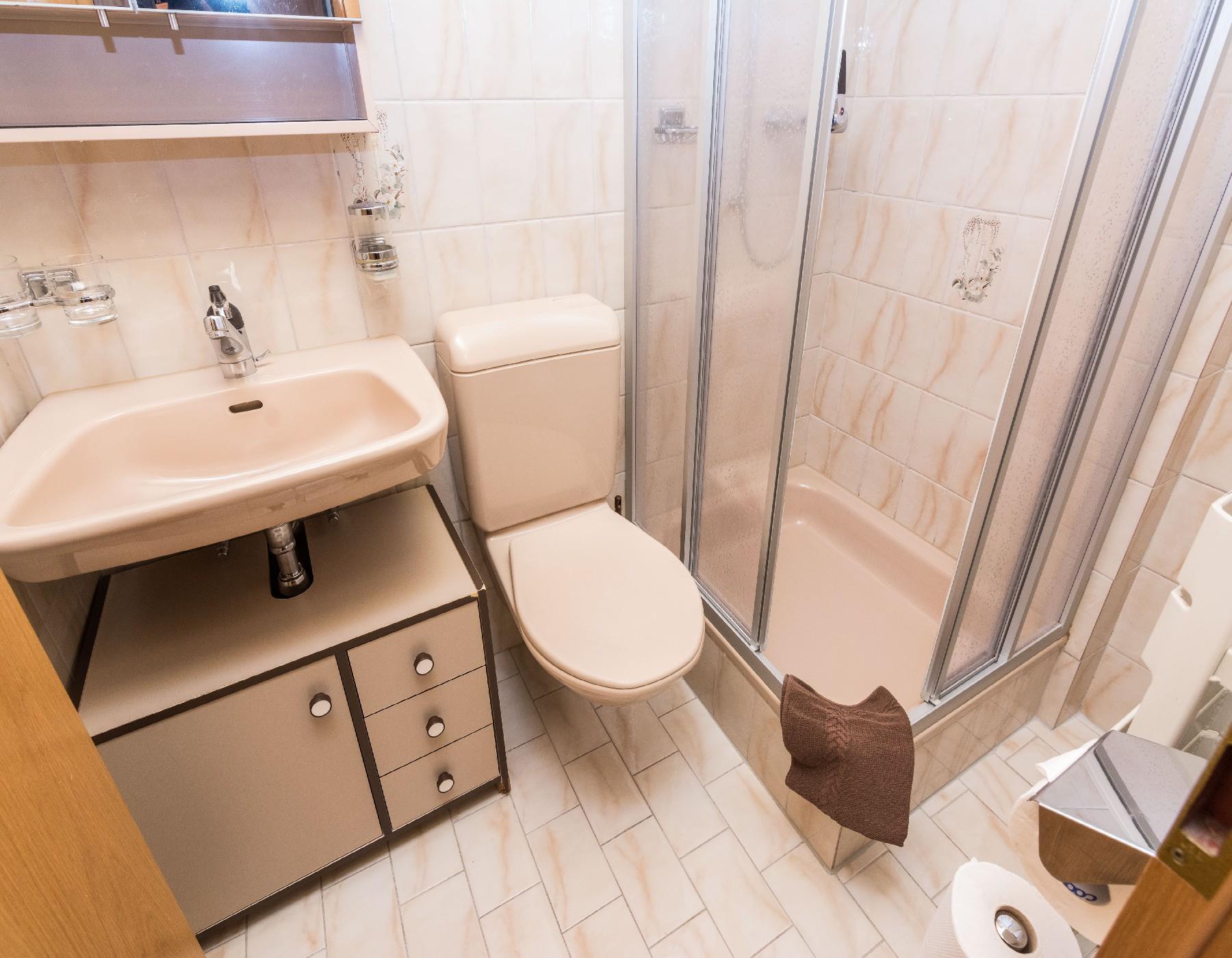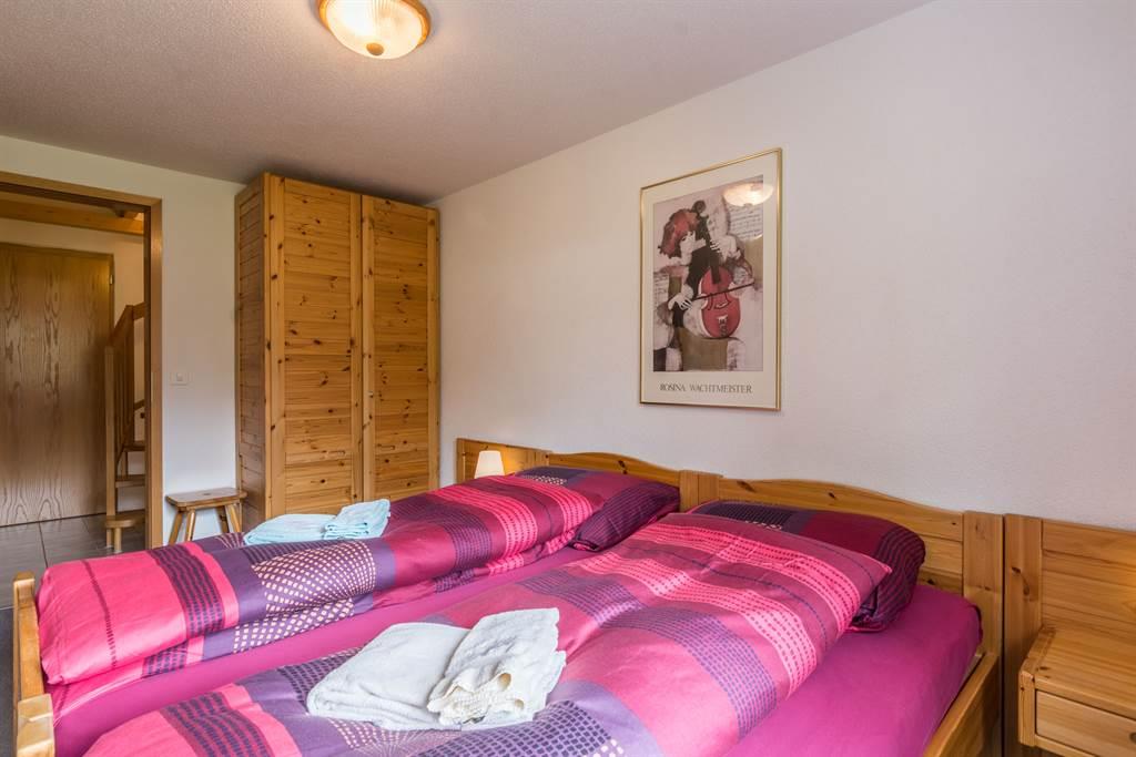 1 Zimmer mit 2 Betten - 1 Zimmer mit 2 Bett (geschlossene Estrade, leicht abgeschrägt). Bett- und Toilettenwäsche sind vorhanden und im Preis inbegriffen. Dusche/WC.