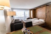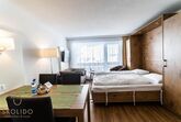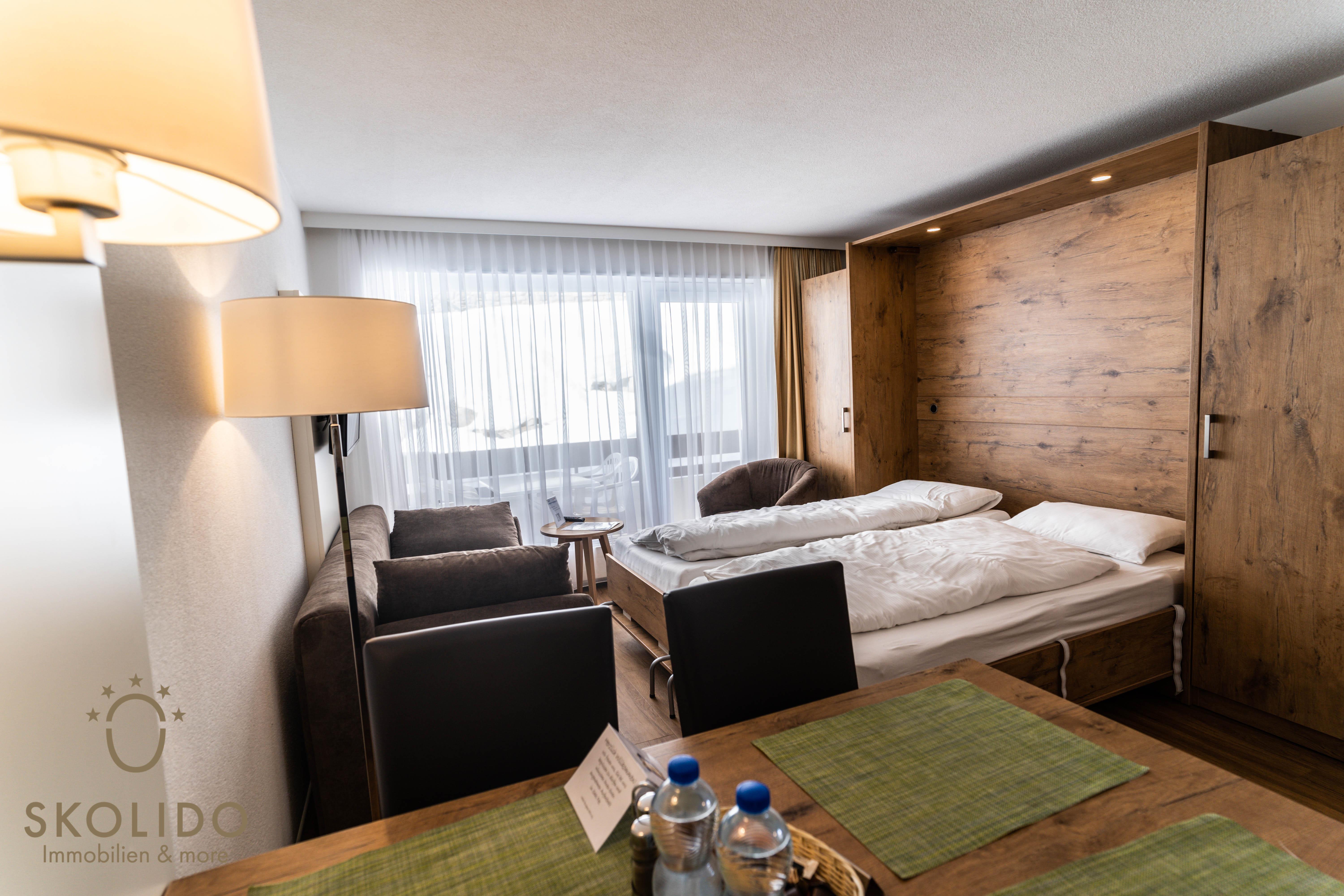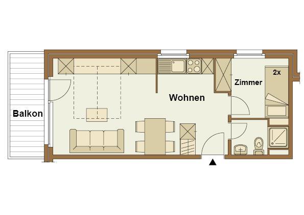 Die im Osten gelegene Wohnung (Baujahr 1972) bietet auf 39m2 Platz für 2 bis 4 Personen. Sie ist einfach und gemütlich eingerichtet. Sie verfügt über ein Schlafzimmer mit Etagenbett und einen Ess- und Wohnraum mit einem Schrankbett/Doppelbett. Ausserdem bietet die Wohnung eine funktional eingerichtete Kochnische sowie 1 Dusch/WC-Raum. Auch hat die Wohnung einen eigenen Balkon. Ideal ist die Wohnung für 2 Erwachsene und 2 Kinder.