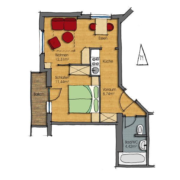 Unser Appartement TELFS befindet sich im zweien Stock und bietet Ihnen ein Schlafzimmer mit Doppelbett und einen Wohn/Schlafraum mit Ausziehcouch für insgesamt 2-3 Personen.