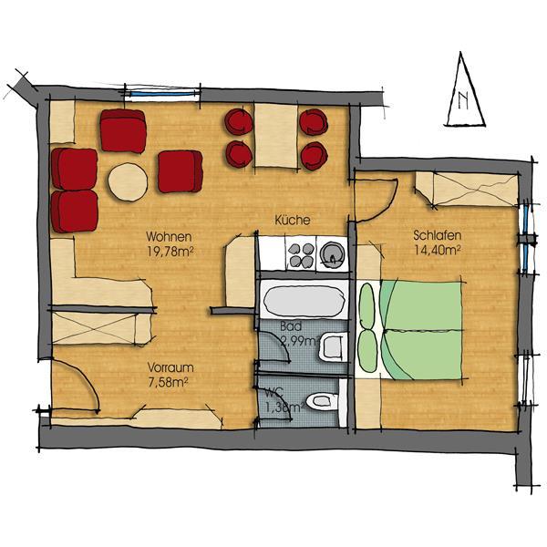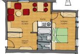 Unser Appartement KITZBÜHEL befindet sich im dritten Stock und bietet Ihnen ein Schlafzimmer mit Doppelbett und einen Wohn-/Schlafraum mit Ausziehcouch für insgesamt 2 bis 4 Personen.