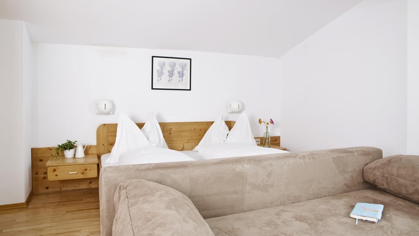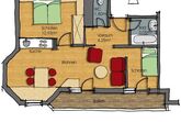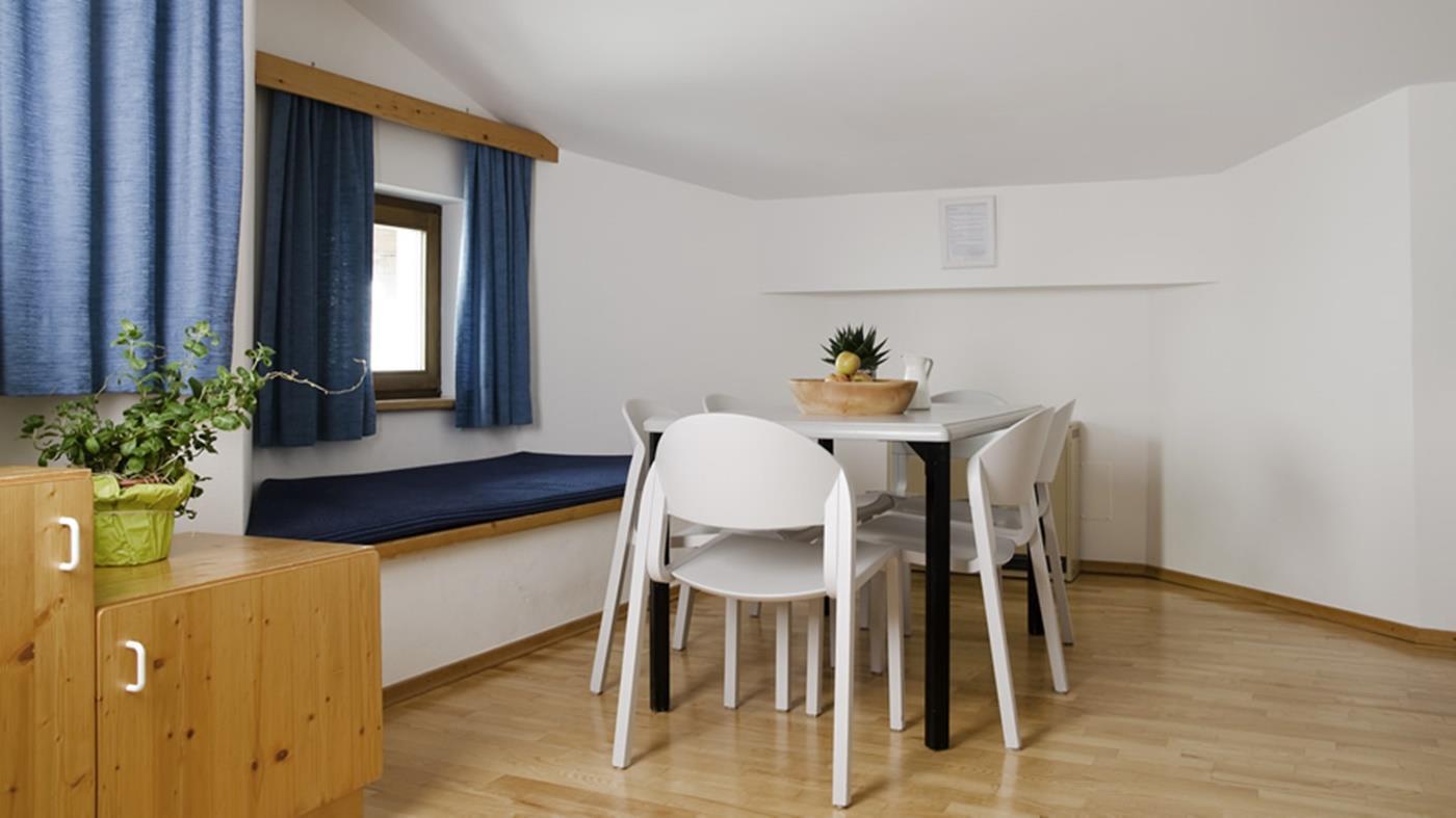 Unser Appartement IMST befindet sich im dritten Stock und bietet Ihnen ein Schlafzimmer mit Doppelbett, ein Schlafzimmer mit Stockbett und einen Wohn-/Schlafraum mit Ausziehcouch.