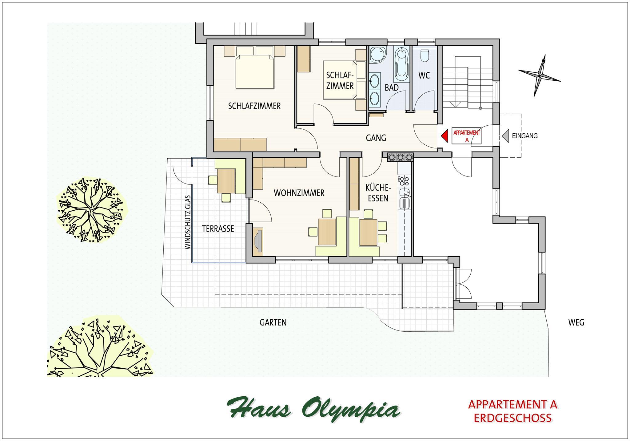 Das sehr gepflegte Haus Olympia bietet 2 gemütliche und komfortabel eingerichtete Ferienwohnungen.