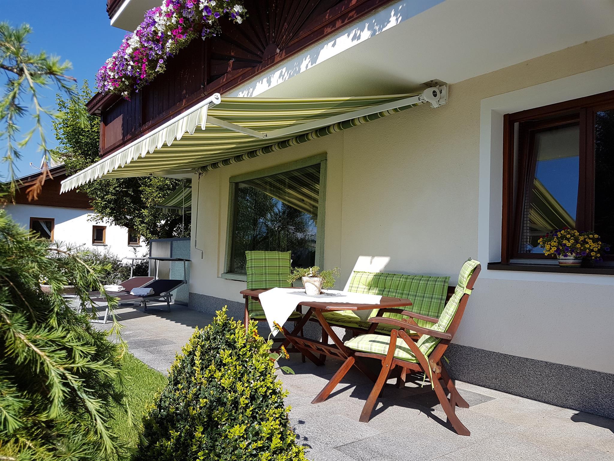 • große Terrasse mit Gartenmöbeln & direktem Zugang in den Garten