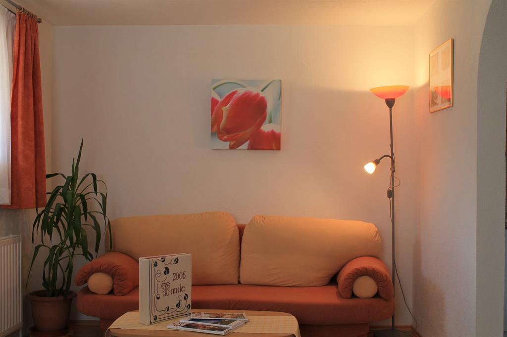 1 exclusives Zirbenholzschlafzimmer, 1 Wohnzimmer mit ausziehbarer Couch, Küche komplett ausgestattet mit Mikro und E-Herd, Diele, Dusche/WC, Radio, Sat-TV. Terrasse.