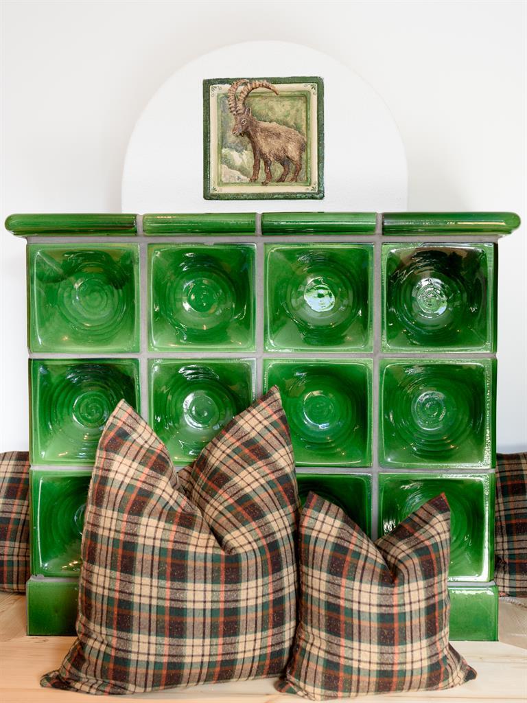 Mit viel Glück können Sie vom Westbalkon des Appartements Felsgeschichten Gämsen oder Kletterer in den steilen Felswänden hinterm Haus beobachten. Ziemlich sicher aber entdecken Sie im Appartement einen schönen Steinbock in einer Ofenkachel.