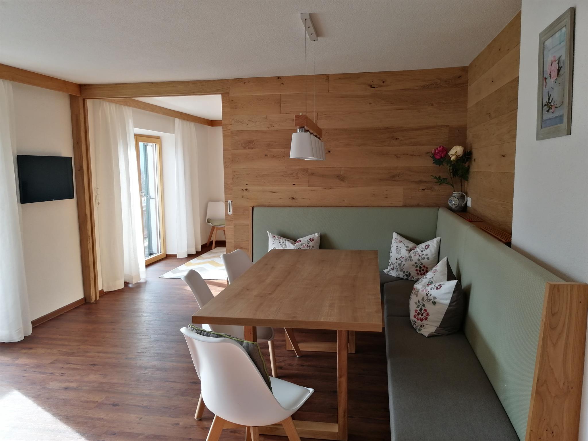 Unsere neue Ferienwohnung Bergblick liegt im 1.Stock und wurde im Frühjahr 2018 frisch renoviert. Sie ist modern und hochwertig eingerichtet mit großer Wohnküche, zwei Schlafzimmern, Bad und WC. Vom Balkon haben sie einen wunderschönen Ausblick.