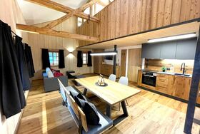 Ein drittes 75 m² großes Appartement für 4 bis 6 Personen im ersten Stock verfügt über zwei Schlafzimmer mit Boxspringbett, eine Schlafcouch, einem offenen Wohn-, Koch-und Essbereich und zwei Badezimmer mit Dusche/Badewanne und WC.