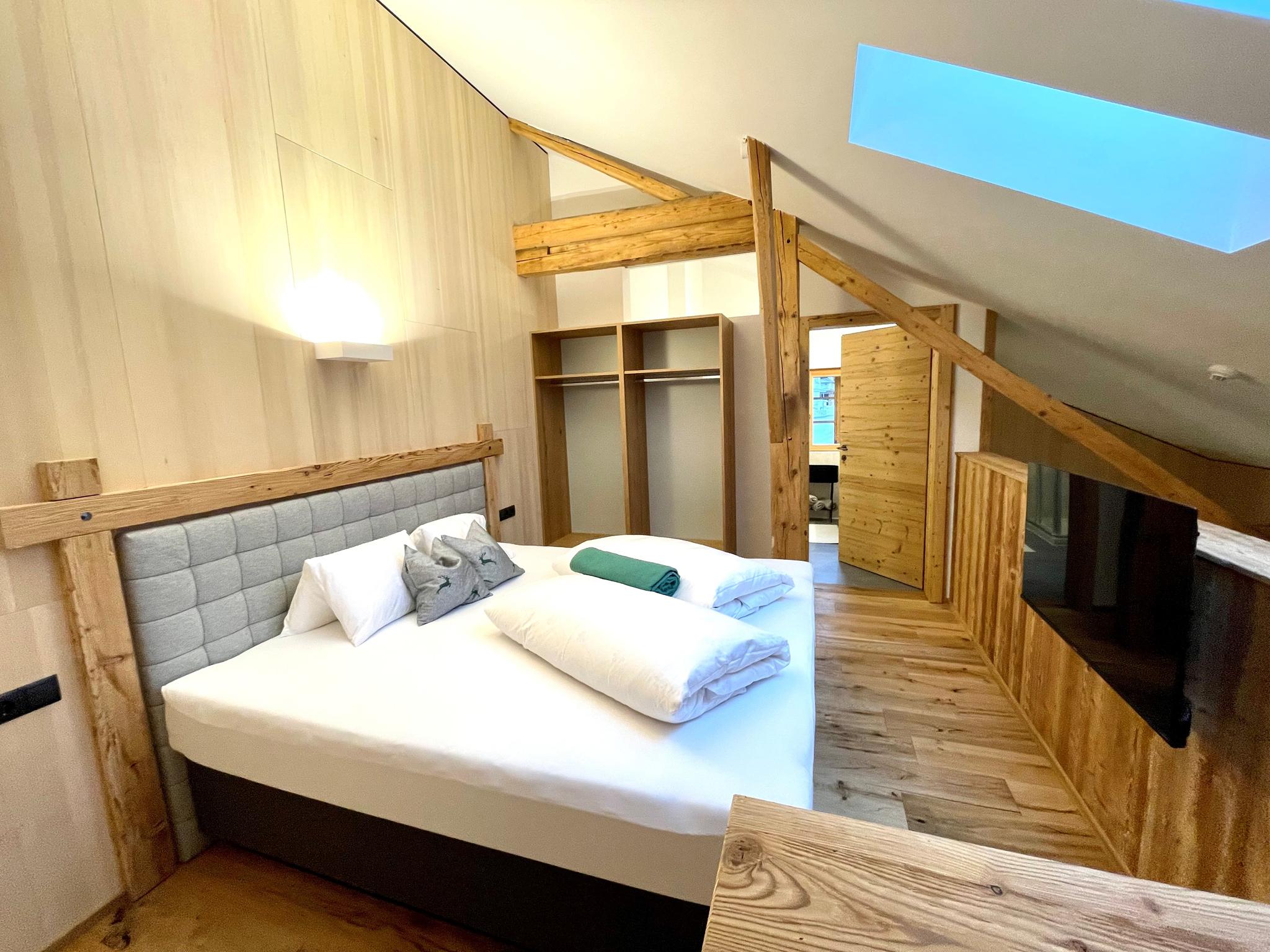 Die zwei modernen und neuwertigen 55 m² großen Appartements für 2 bis 4 Personen im ersten Stock verfügen über je ein Schlafzimmer mit Boxspringbett, eine Schlafcouch, einem offenen Wohn-, Koch-und Essbereich und einem Badezimmer mit Dusche und WC.