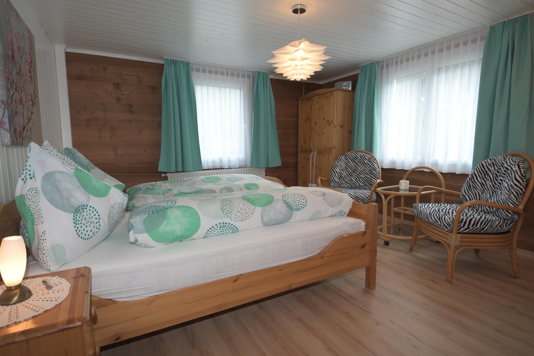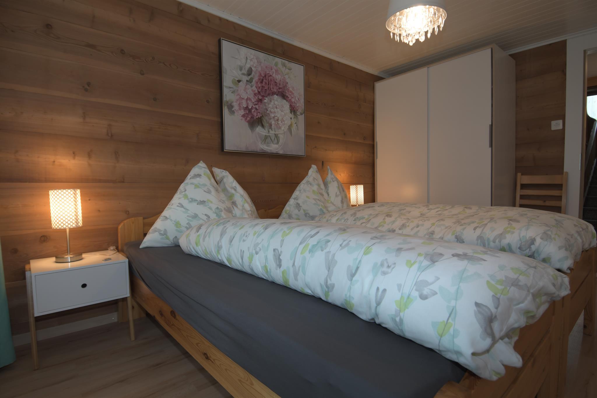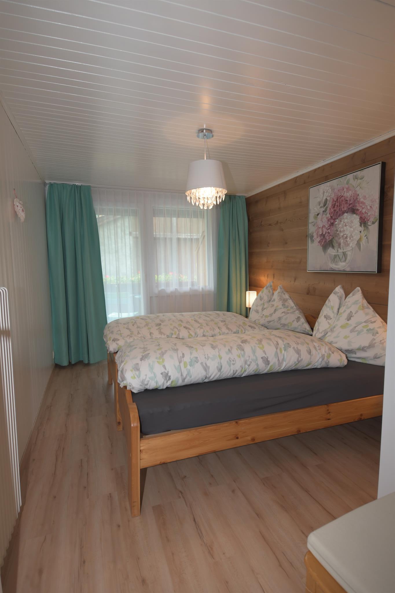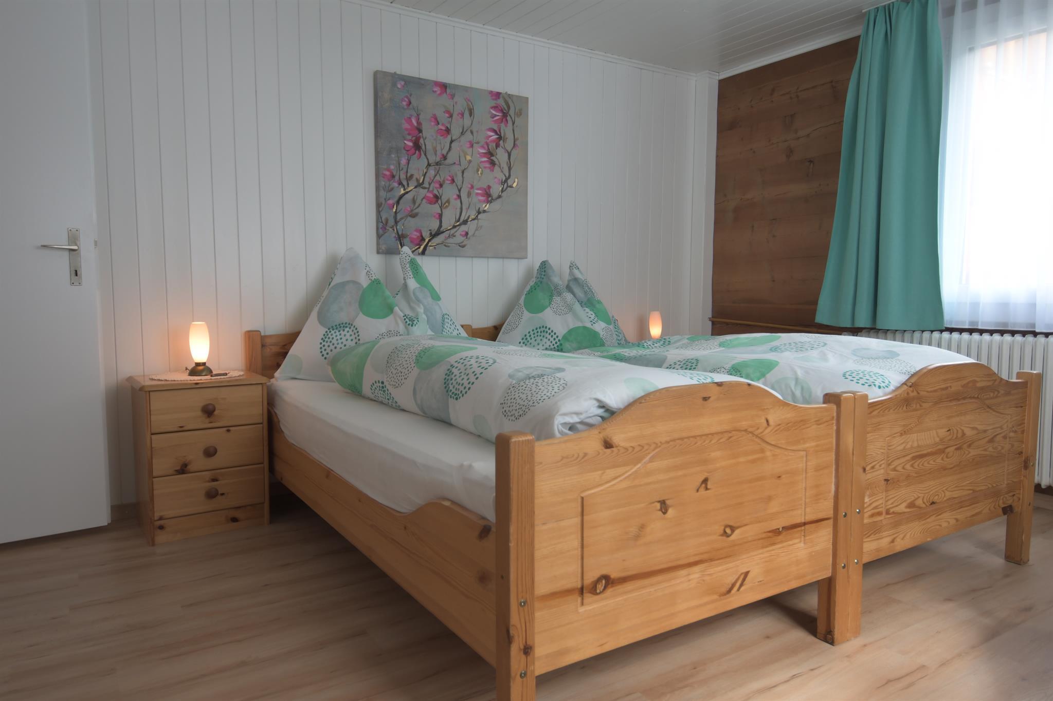Die 3-Zimmerwohnung im 1. Stock hat einen eigenen grossen Balkon, 2 Doppelschlafzimmer, Wohnküche mit Geschirrspüler, Microwelle, Kühlschrank und Kochfeld. WC/Dusche. TV und WLAN.