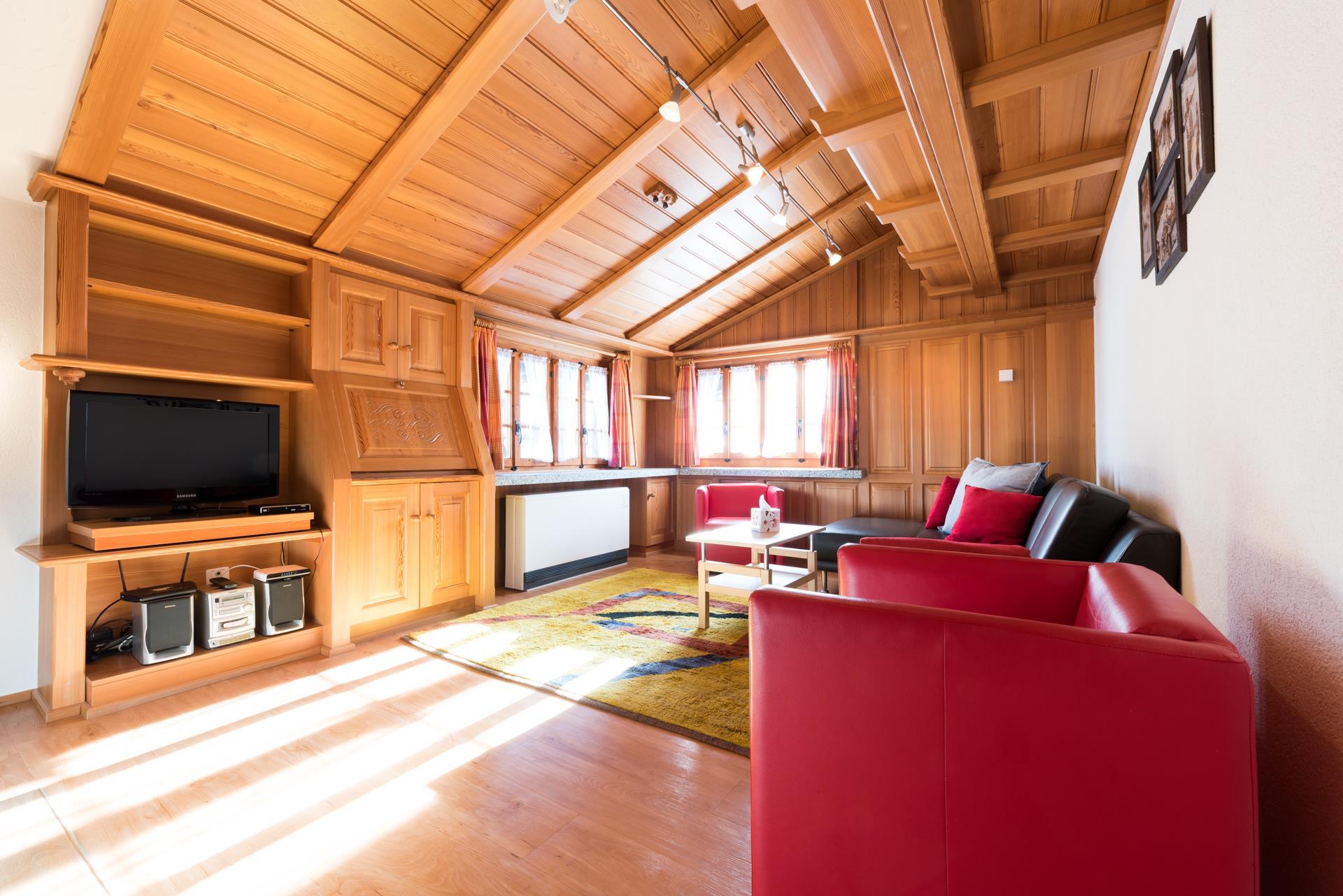 1. Stock. Die Wohnung verfügt über ein seperates Schlafzimmer, Bad/ WC mit Whirlwanne, Wohnzimmer mit Kamin und Gillsteinofen, Kabelfernseher mit Flachbildschirm, Stereo, kostenloser W- Lan Internetanschluss, Koch- und Sitzecke, Balkon zur Ostseite, kleines Zimmer im Obergeschoss mit zusätzlicher Schlafgelegenheit. Nichtraucher-Wohnung. Haustiere erlaubt.