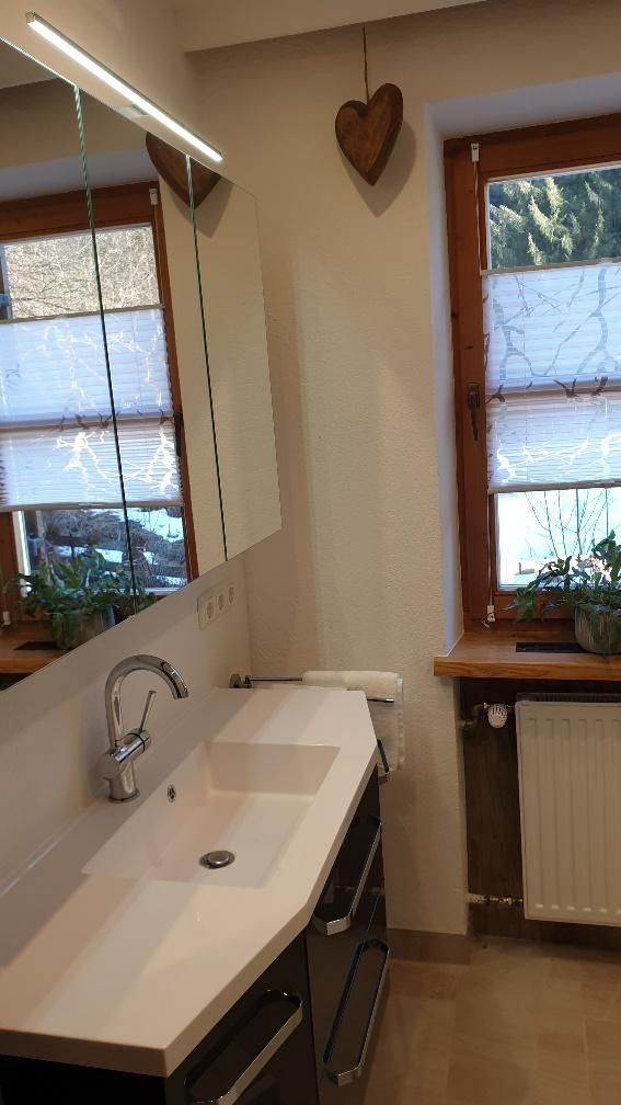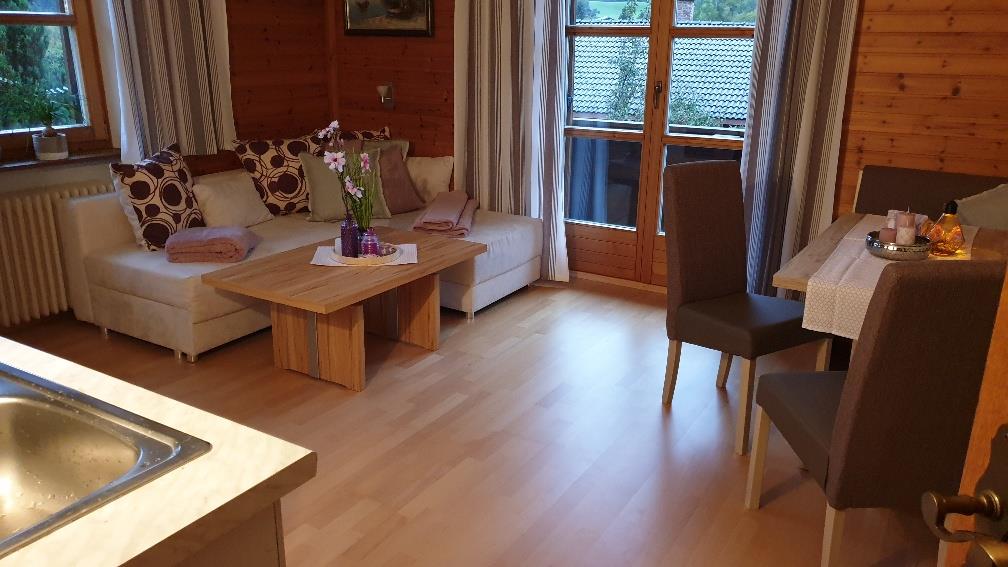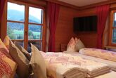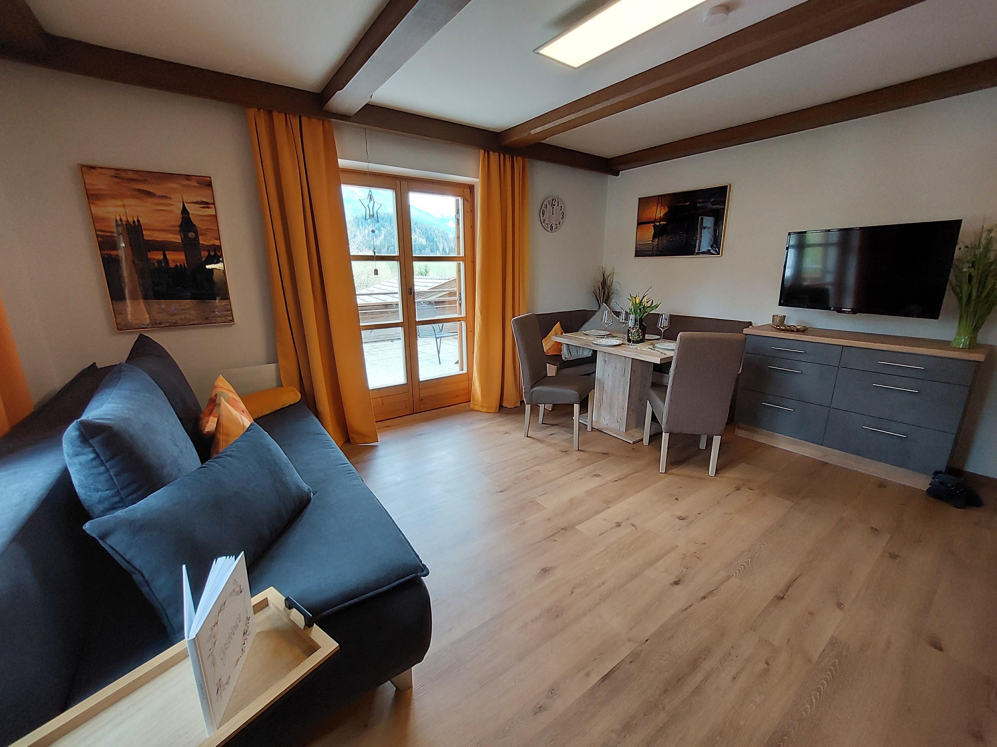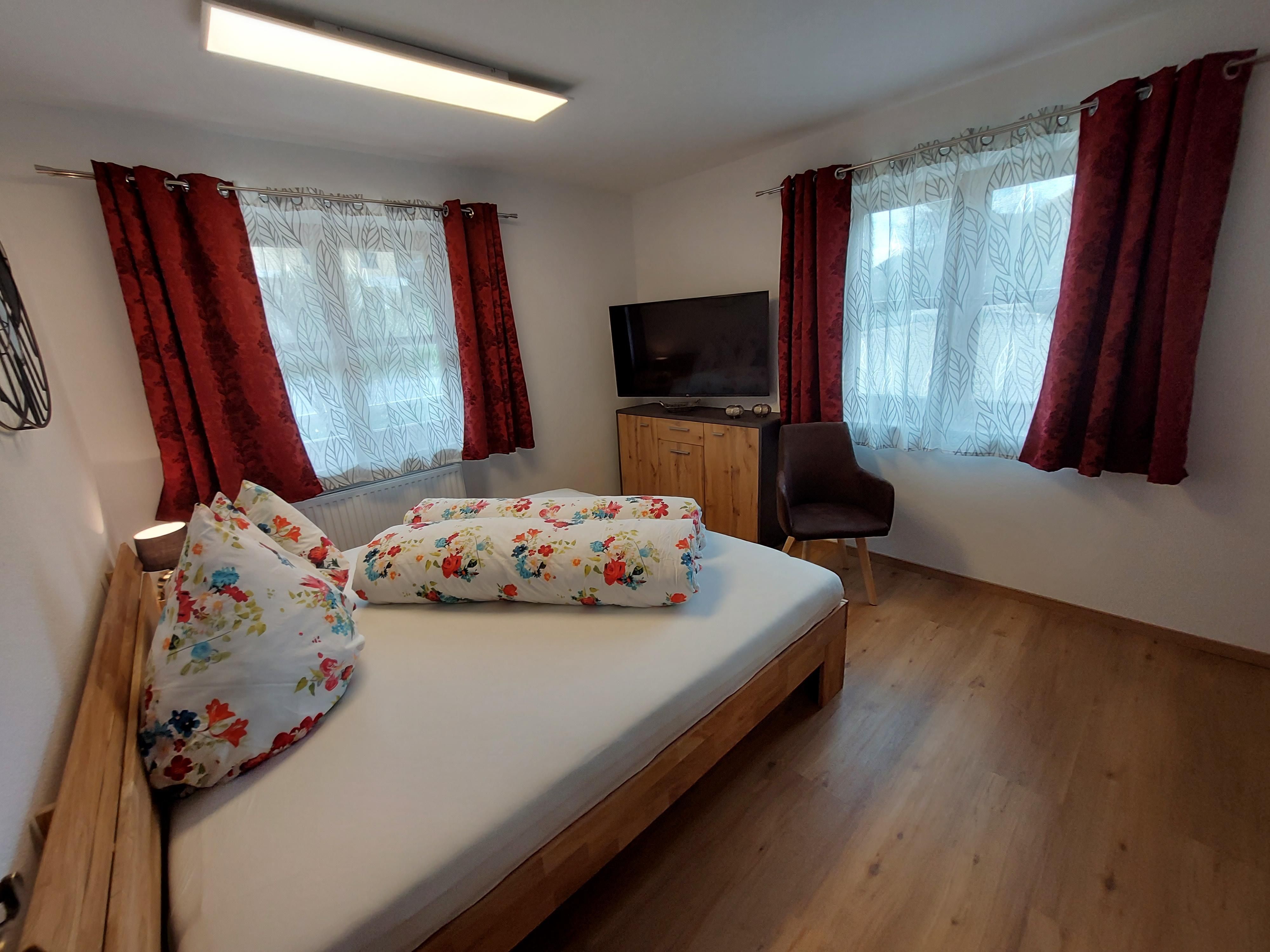 Unsere Ferienwohnung Wilder Kaiser verfügt über 60 m² mit zwei Schlafzimmern. Ein Schlafzimmer hat ein Doppelbett und ein Einzelbett. Das andere Schlafzimmer hat ein Doppelbett mit Waschbecken im Zimmer. Das Appartement hat ein Bad mit Dusche und ein separates WC. Die Wohnküche mit Eckbank und Couch zum Ausziehen ist voll ausgestattet. Auf dem Balkon kann man den Blick zum Wilden Kaiser genießen. Im Sommer gibt es auch noch einen extra Gartenplatz mit Blick zum Brandstadl. Beide Schalfzimmer und das Wphnzimmer verfügen über einen TV.