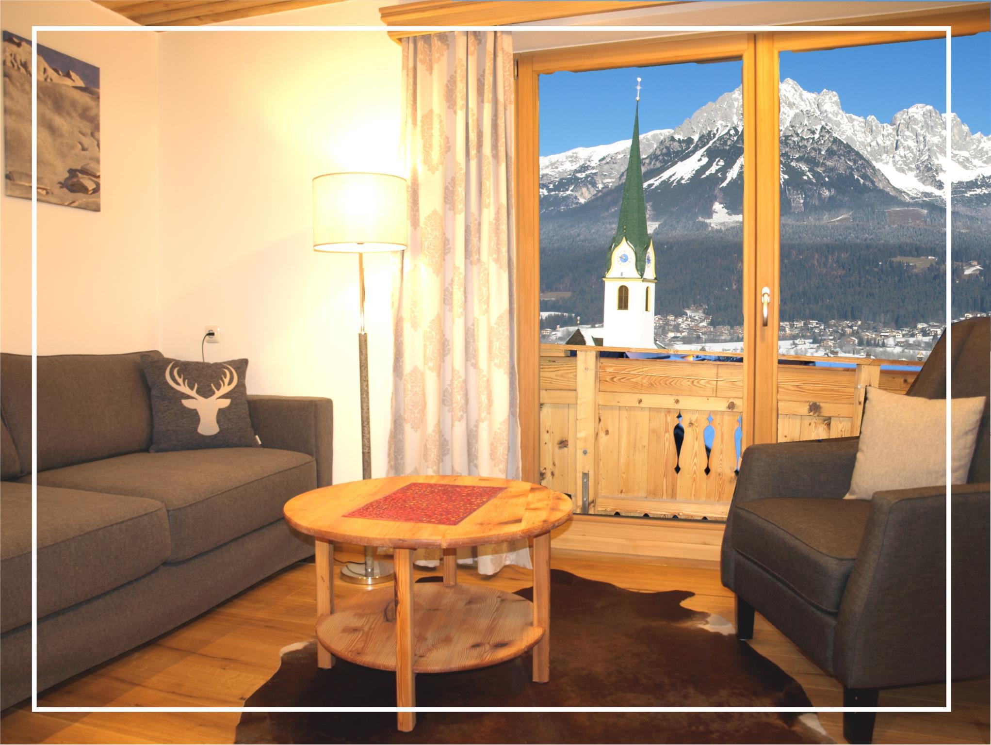 • unser inklusiv Highlight: jede Wohnung mit Panoramablick auf die gesamte Pracht des majestätischen Wilden Kaiser`s