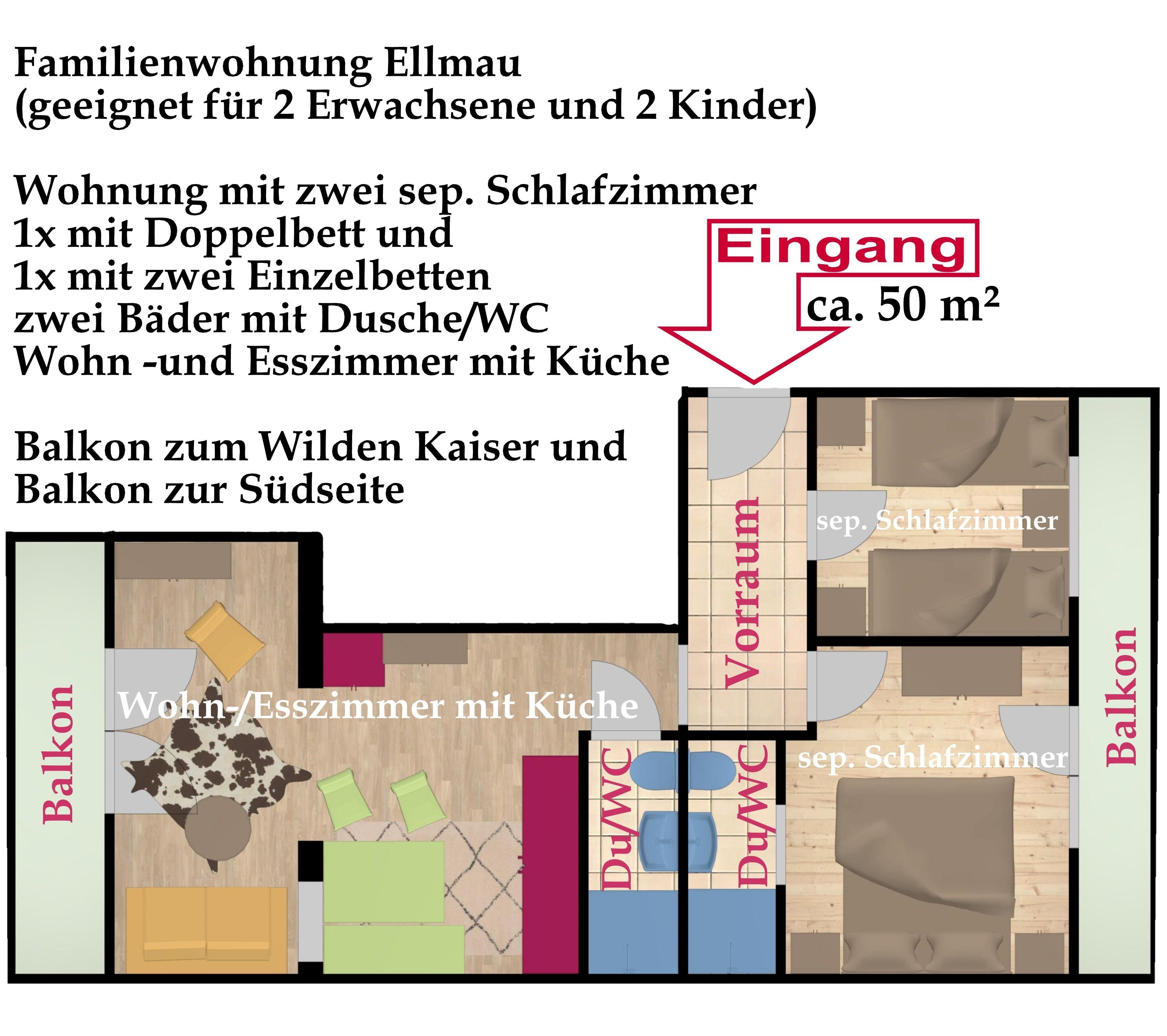 *Ihr Urlaubs-Zuhause daheim am Wilden Kaiser..... mit: neuwertigen Landhauswohnungen je 50 - 80m², mit jeweils zwei sep. Schlafzimmer, zwei Bäder und Balkon