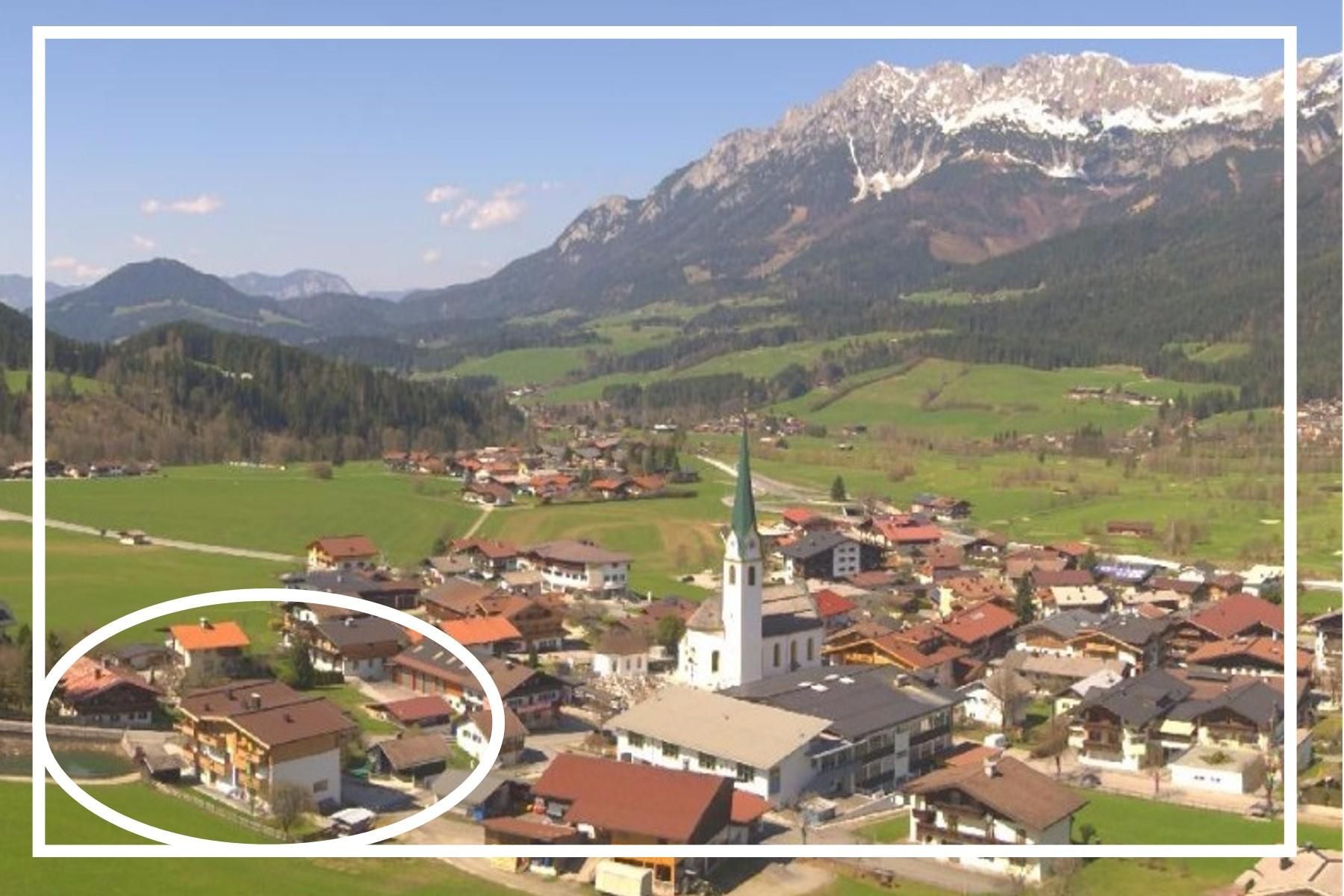 ....unser Appartementhaus befindet sich in zentraler Lage, direkt im Zentrum von Ellmau, mit Blick zum Wilden Kaiser.