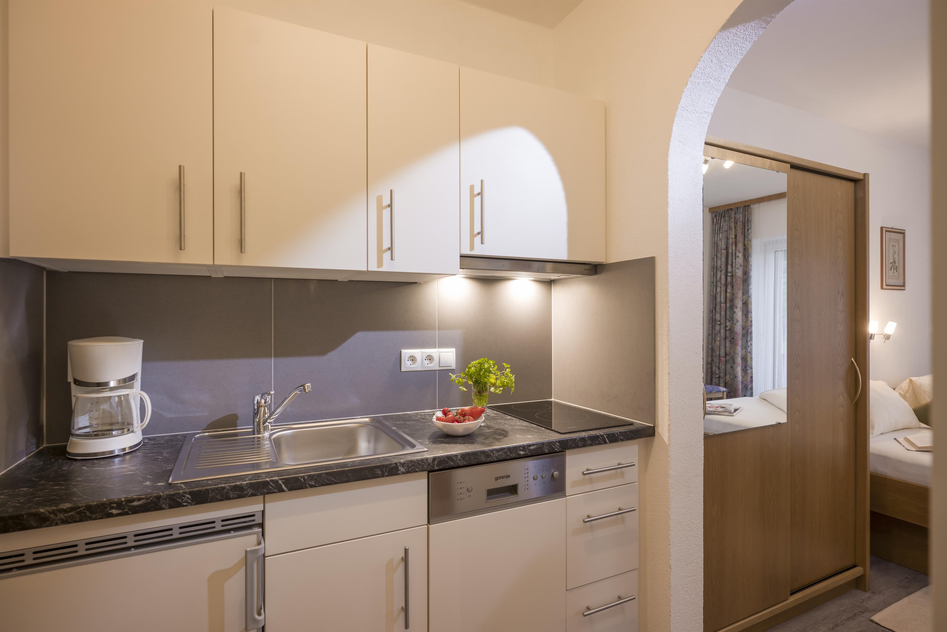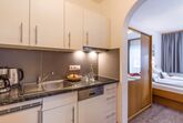 Studio für 2 Personen mit schöner Küche (Geschirrspüler), großem Eckbalkon, Kabel TV, WLAN, Haarfön