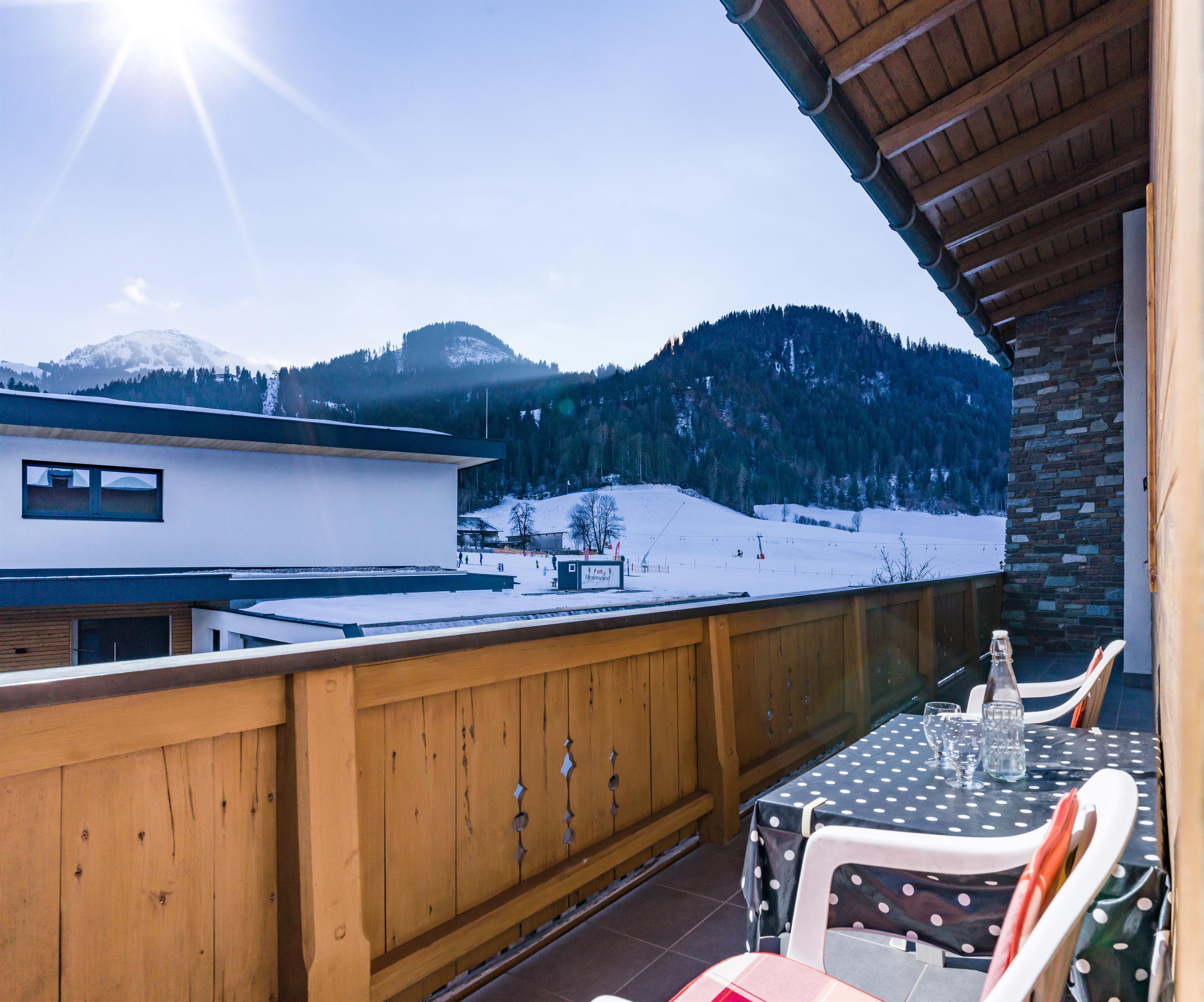 Unsere Appartements sind mit großen Balkonen ausgestattet, die alle einen herrlichen Ausblick auf die umliegende Bergwelt ermöglichen.