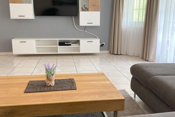Diese exklusive Deluxe-Ferienwohnung befindet sich im ersten Stock und beeindruckt durch zwei großzügige Balkone zur Südseite sowie einen weiteren nach Westen ausgerichteten Balkon. Die Unterkunft verfügt über eine großzügige, separat gelegene Küche mit Essecke in einem Erker, ein geräumiges Wohnzimmer mit einem eleganten Kamin und drei komfortable Doppelschlafzimmer. Zwei Badezimmer stehen zur Verfügung, wovon eines mit einem Whirlpool, Dusche, WC und Doppelwaschbecken ausgestattet ist, während das andere über eine Dusche/WC und ein Waschbecken verfügt.