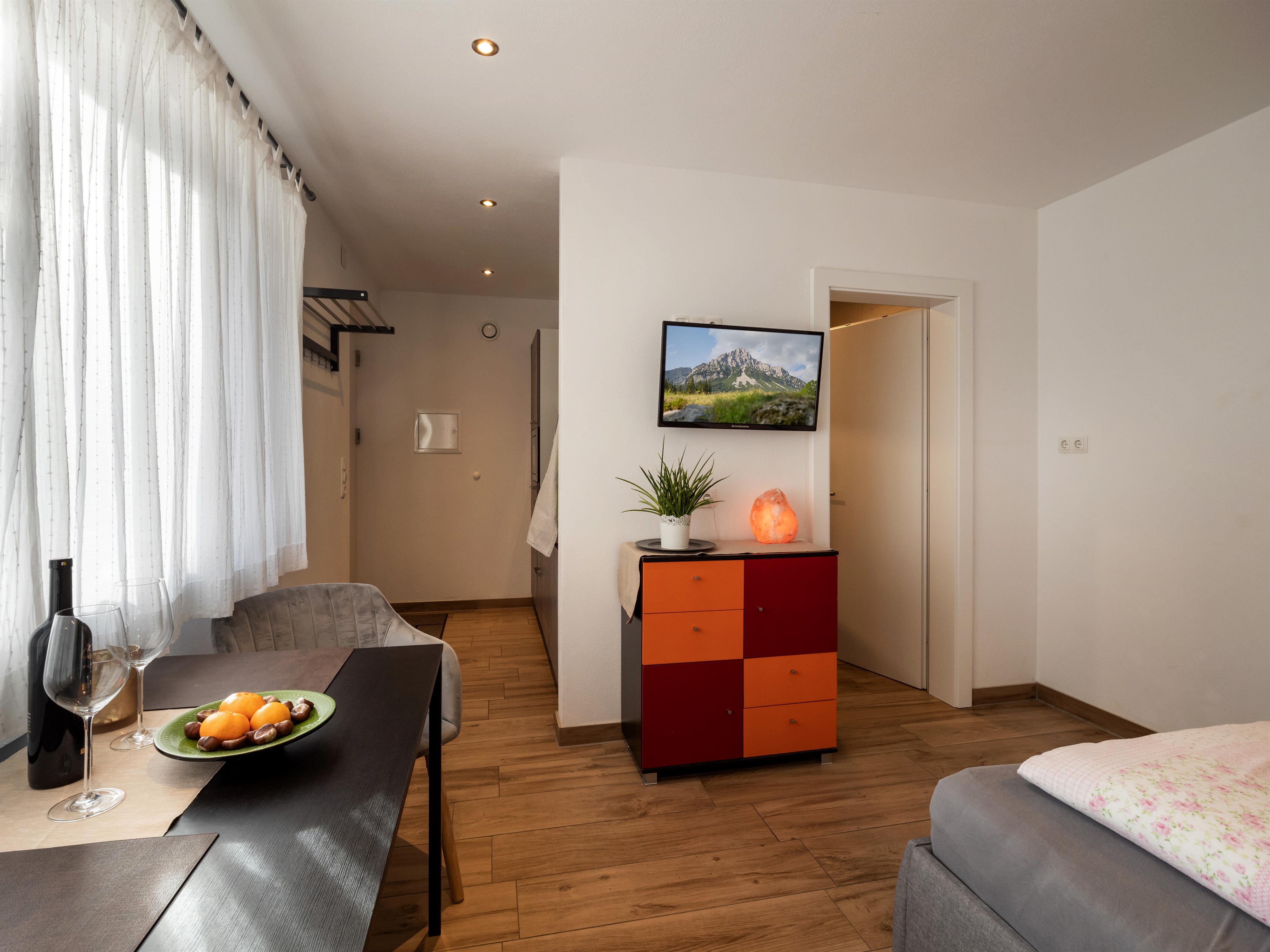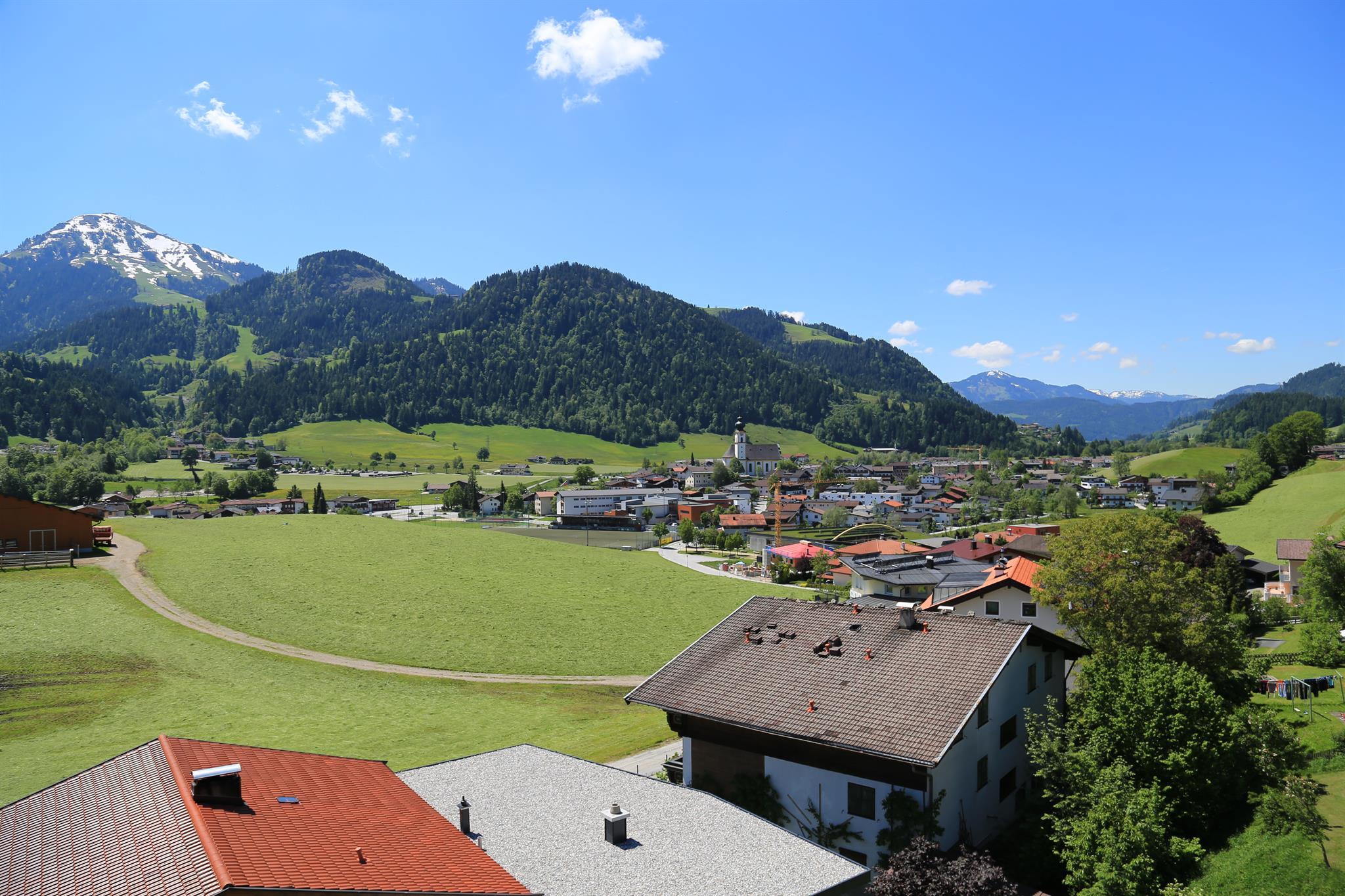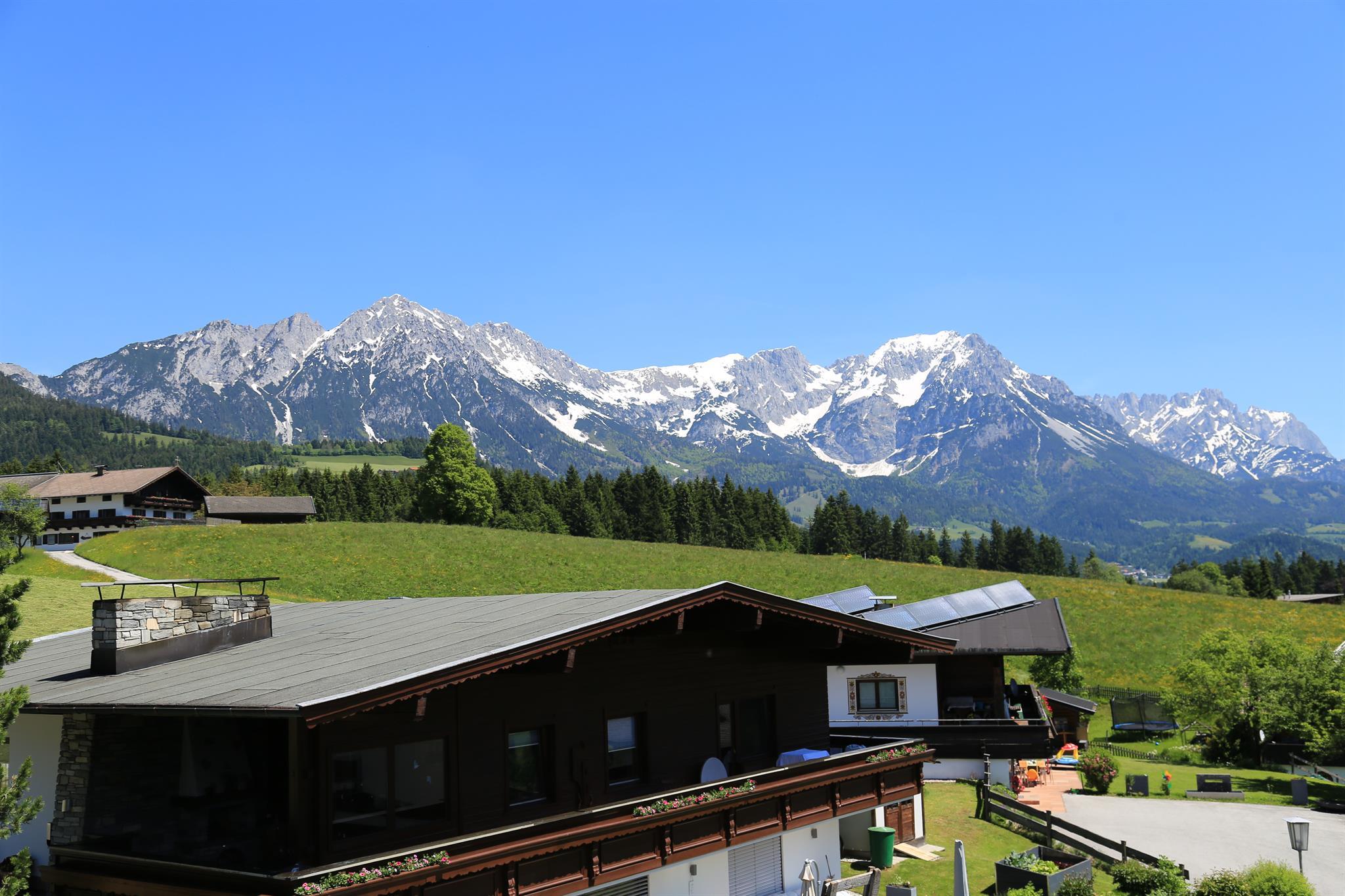 Unser neu gebautes Appartement, welches sich auch hervorragend als Singleappartement eignet, befindet sich auf einer Anhöhe von welcher aus man einen herrlichen Blick auf die Bergwelt Wilder Kaiser, den Bandstadl wo sich auch das bekannte Bergdoktorhaus befindet sowie das Skigebiet Hohe Salve genießen kann.