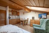 Unsere liebevoll eingerichtete Ferienwohnung im Tiroler Stil ist ausgelegt für 1-2 Personen und bietet einen Wohn-/Schlafraum mit Kochnische und Essecke, Doppelbett, Badezimmer mit Dusche/WC, SAT-TV und Radio.