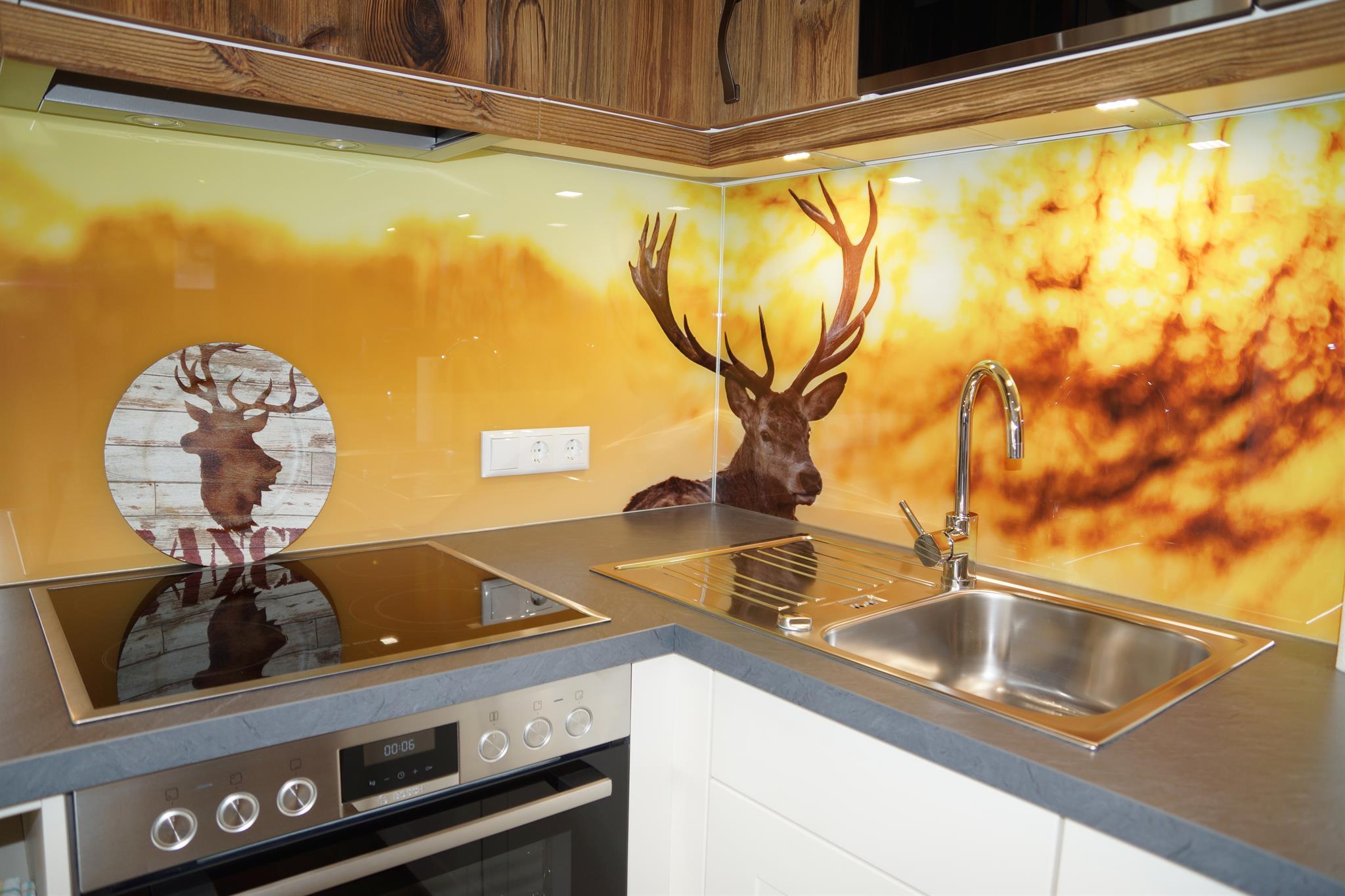 Die Ferienwohnung bietet einen gemütlichen Wohnraum mit voll ausgestatteter Küche, Sitzgruppe, sowie eine ausziehbare Couch.