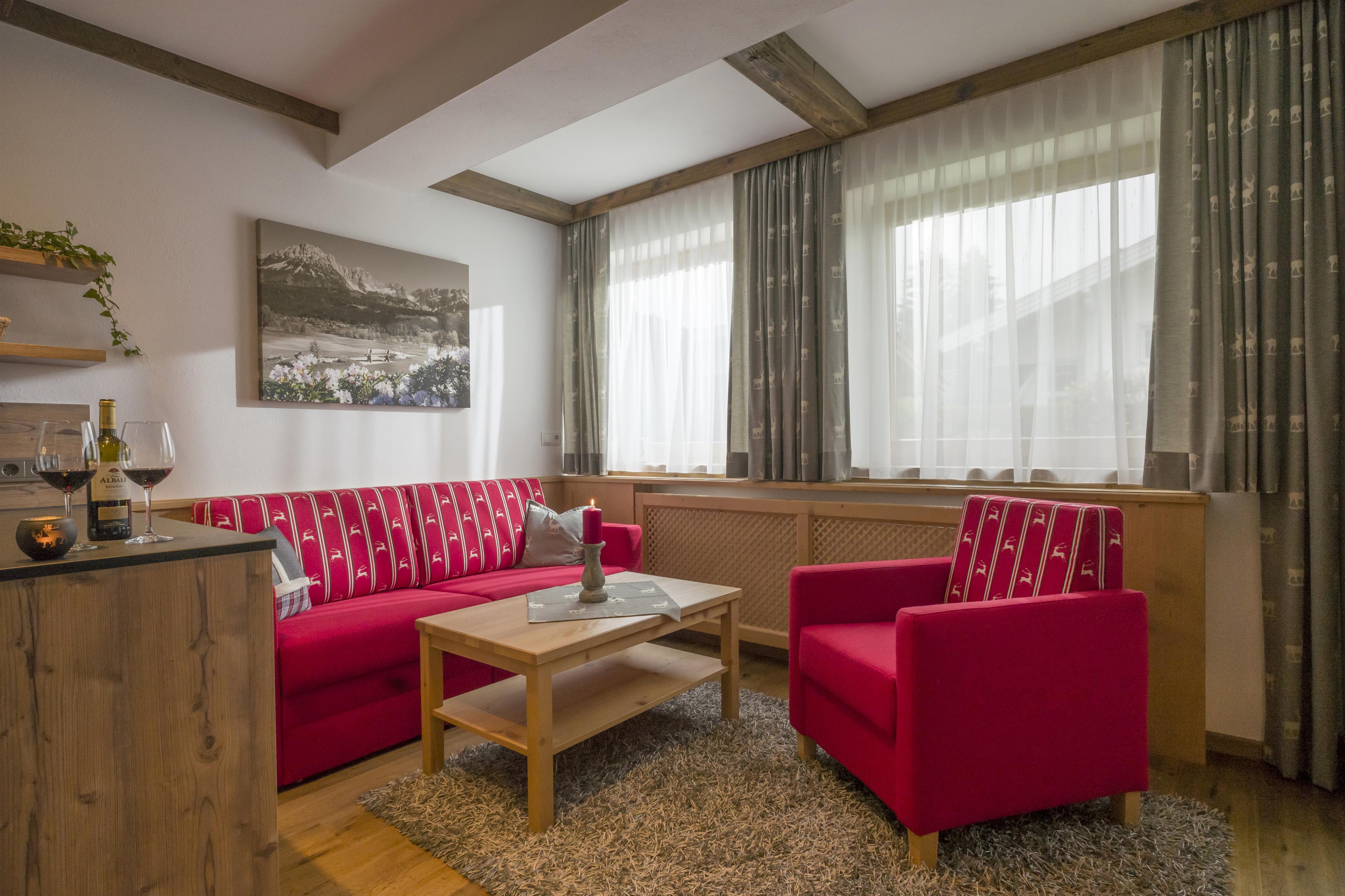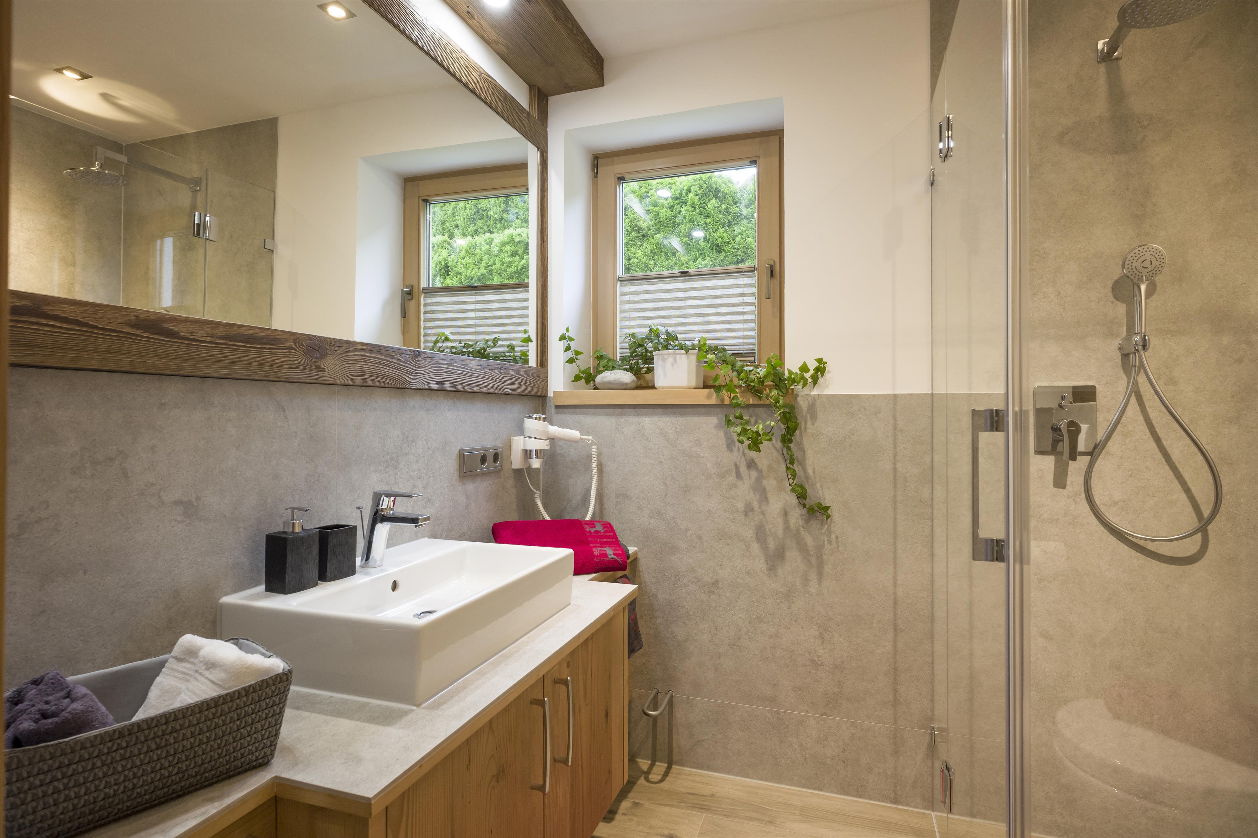 Ihr Luxus-Appartement am Wilden Kaiser. Stilvoll, elegant und charmant präsentiert sich „die Auszeit“ als ihr Urlaubsparadies in Ellmau. Mit viel Altholz und warmen Farbtönen gestaltete Stilelemente beeindrucken Sie im Appartement täglich neu. Das Boxspringbett sorgt für eine wohltuende Nacht, das großzügige Wohnzimmer für den Genuss am Tag. Die Küche ist mit Premium-Markengeräten ausgestattet, zudem sind Geschirrspüler, Mikrowelle, Backofen und ein Kühlschrank mit Gefrierfach bei uns Standard. Eine Nespresso-Maschine steht Ihnen gerne zur Verfügung. Ab einer Woche Aufenthalt bekommen Sie 10 Kapseln zum Genießen und Wohlfühlen dazu. Im neuen Bad mit Fußbodenheizung, sämtlichem Komfort und warmem Altholz wurde eine barrierefreie Dusche installiert. Die Terrasse lädt zu komfortablen Stunden in der Sonne ein - die Liegestühle und Sitzmöglichkeiten sind selbstverständlich für Sie da.