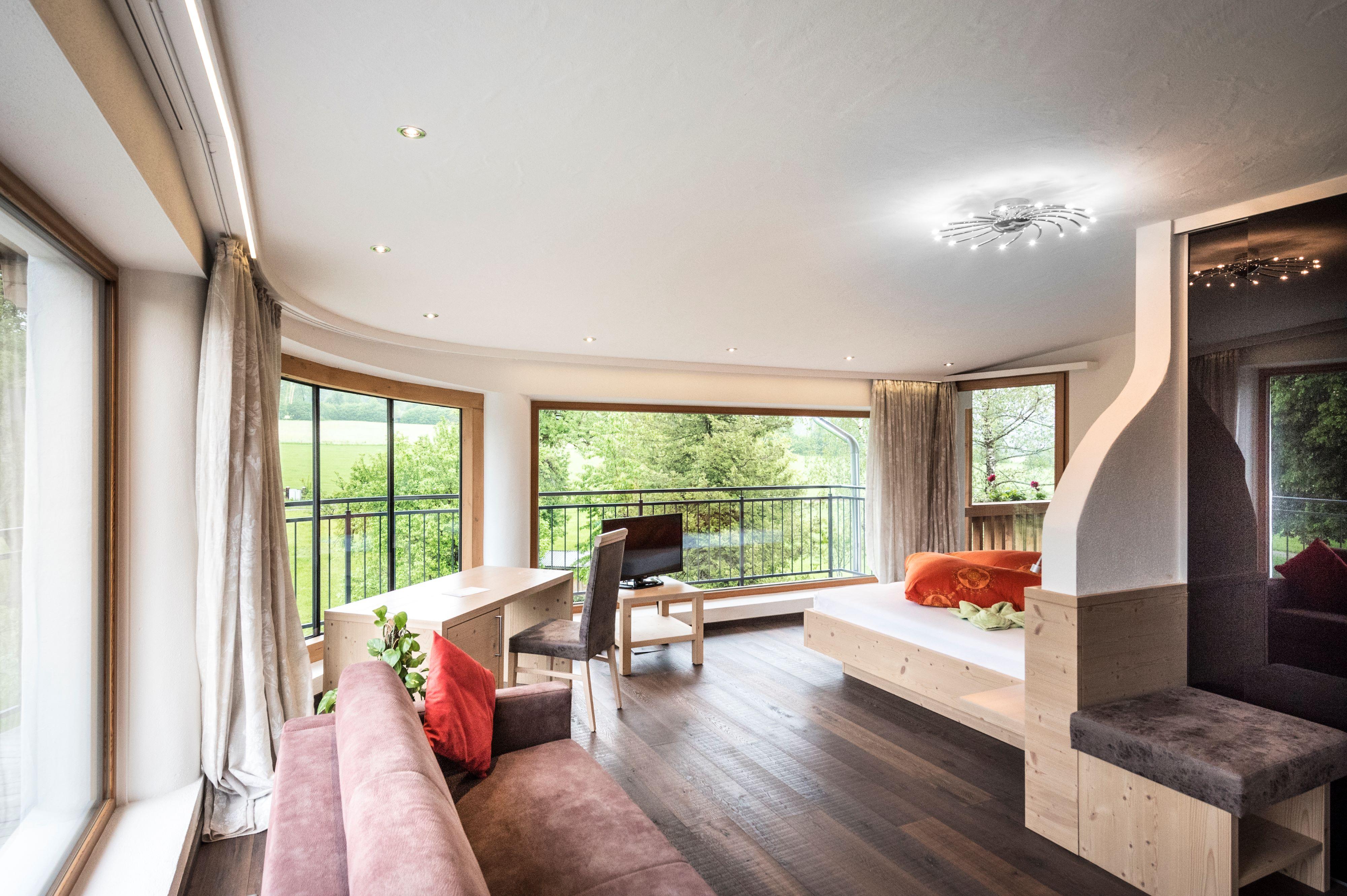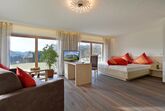 Großzügige, lichtdurchflutete Doppelzimmer mit raumhohen Fenstern, die einen atemberaubendem Ausblick auf die umliegenden Natur bieten, warten auf Sie. Alle Zimmer verfügen über einen gemütlichen Balkon, mit Bestuhlung, ebenerdige Regendusche und WC getrennt, Föhn, Kosmetikspiegel, Flat-TV und Radio, Zimmersafe sowie einer Couch.