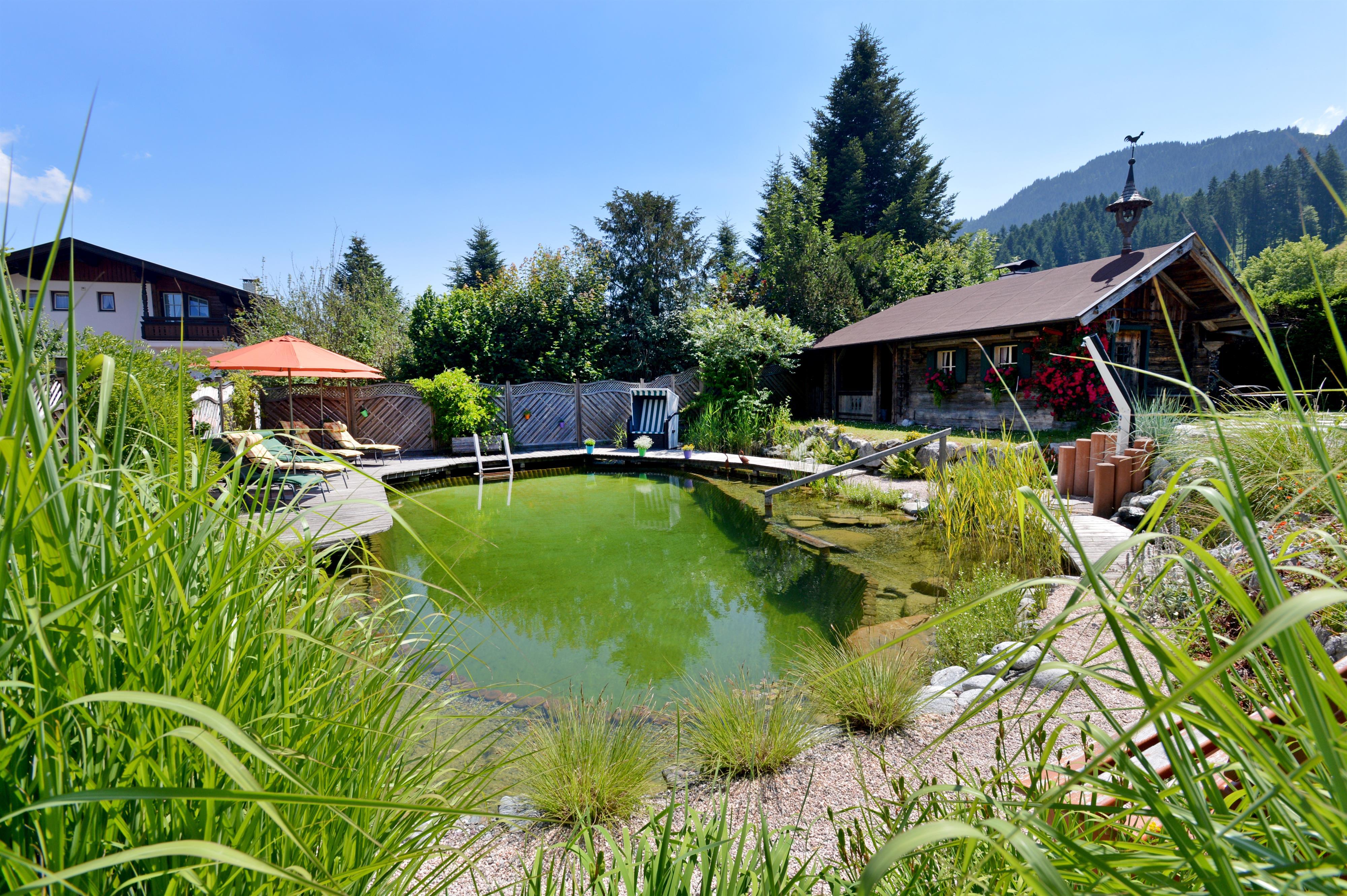 Als Besonderheit können unsere Gäste den klaren, erfrischenden Schwimmteich in unserem Haupthaus, der Alpenresidenz Haus Unterrainer, mitnützen.