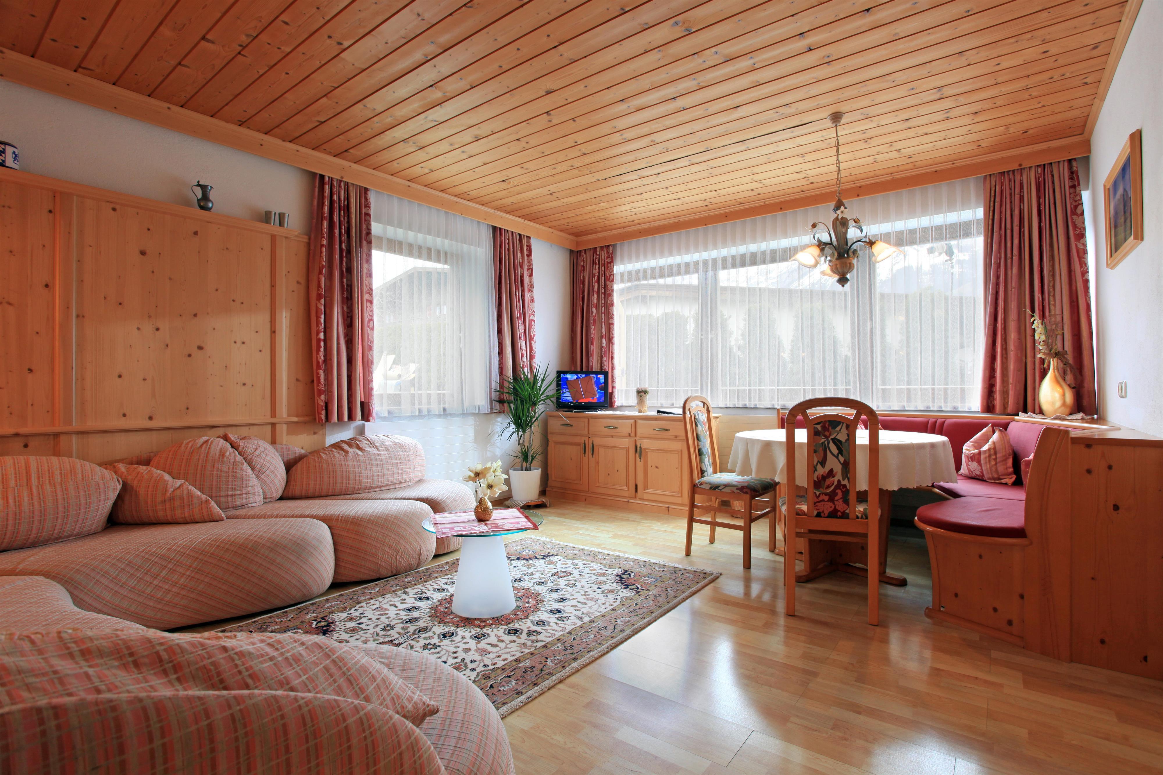 Das geräumige Appartement 1 mit 75 m² im rustikalen Tiroler Stil bietet zu den 2 Schlafzimmern einen eigenem Gartenbereich zum Entspannen im Grünen.
