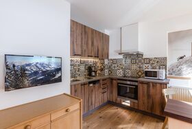 Ausgestattet mit Kühl- Gefrierschrank, Spül-, Kaffeemaschine, Mikrowelle, Backrohr, Bettwäsche, Handtücher, Haarföhn.