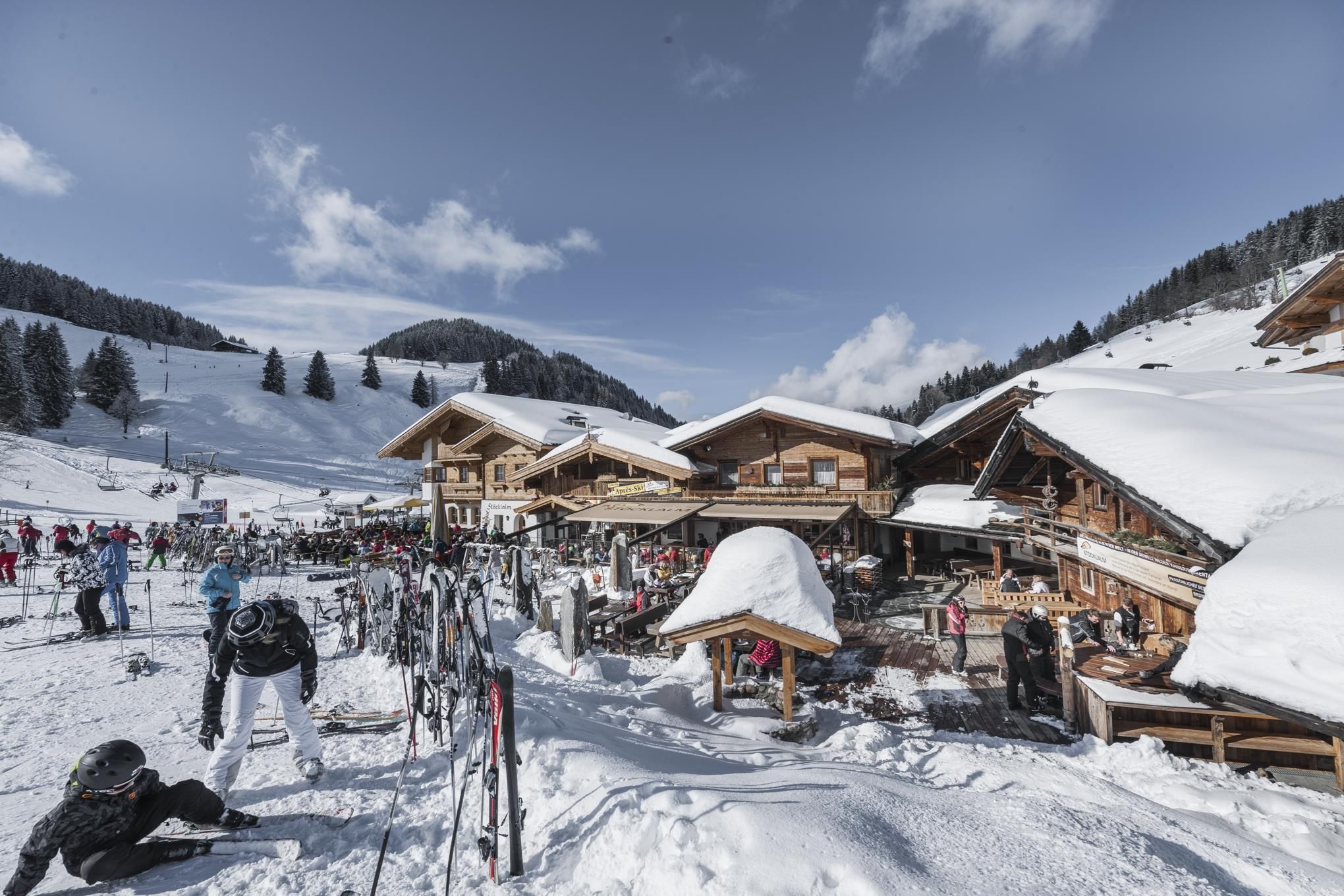 Herzlich Willkommen bei der Stöcklalm in Hochsöll! Vom Bauernhof zum Gasthof gewachsen, bietet die Stöcklalm typische Tiroler Gastlichkeit. Im Winter präsentiert sich die Alm als Ziel- und Treffpunkt des größten zusammenhängenden Skigebietes Österreichs, der SkiWelt Wilder Kaiser & Brixental. Die Gemütlichkeit und die bodenständige Küche werden von Einheimischen ebenso geschätzt wie von Gästen. Zu jeder Saison ist die Buchung der komfortablen und großzügig ausgestatteten Appartements möglich. Das Besondere an der Stöcklalm ist die familiäre Führung des Hauses, die eigene Bäckerei mit Steinbackofen sowie die Stöcklalm-Hütte. Eine neue Attraktion seit Sommer 2002 ist die Getreidemühle - Teil der Magischen Welt des Hochsöller Hexenwassers - ein Wasser-Erlebnispfad in Hochsöll! Sommer wie Winter ... die Stöckalm ist immer einen Besuch wert!