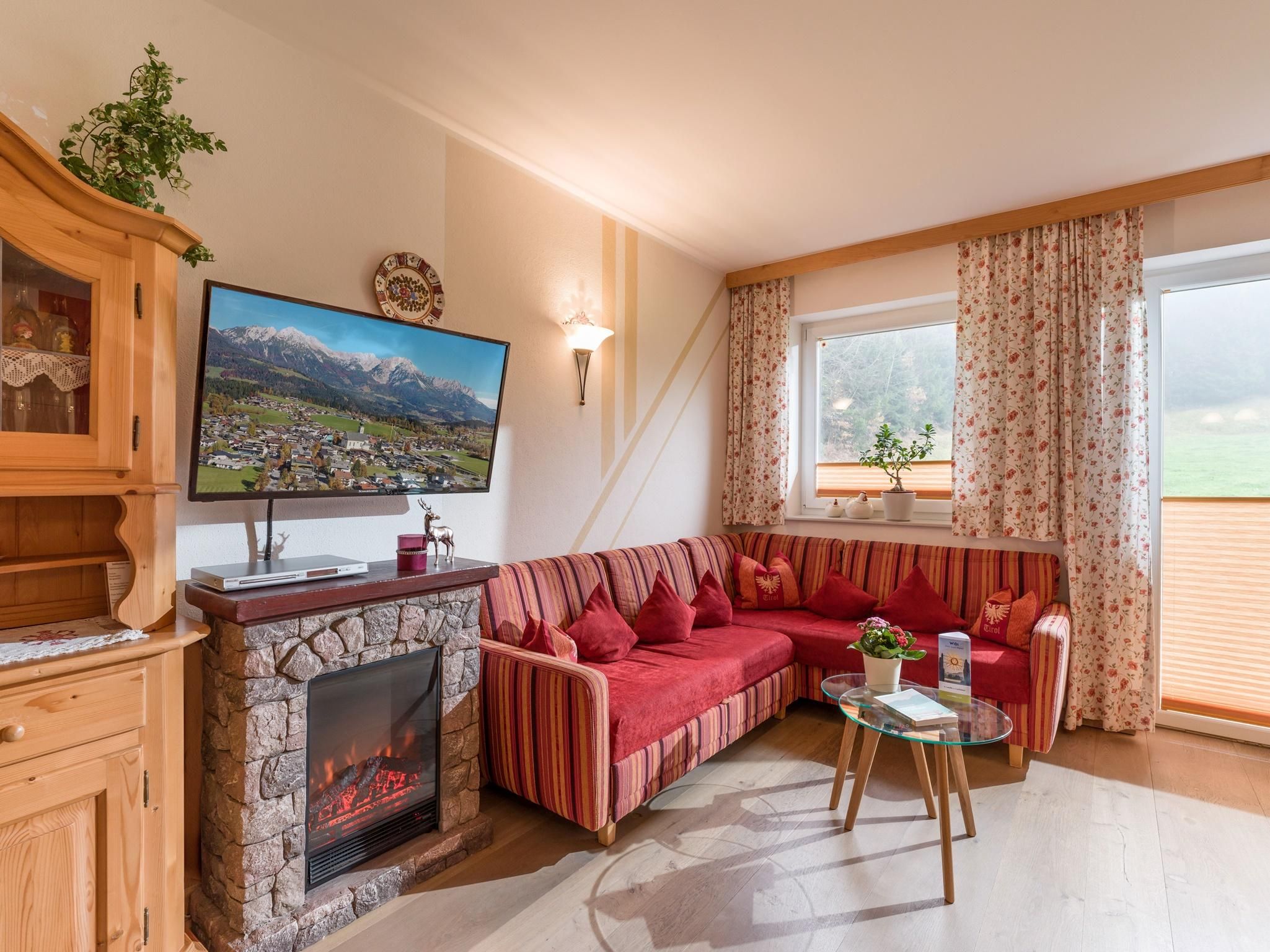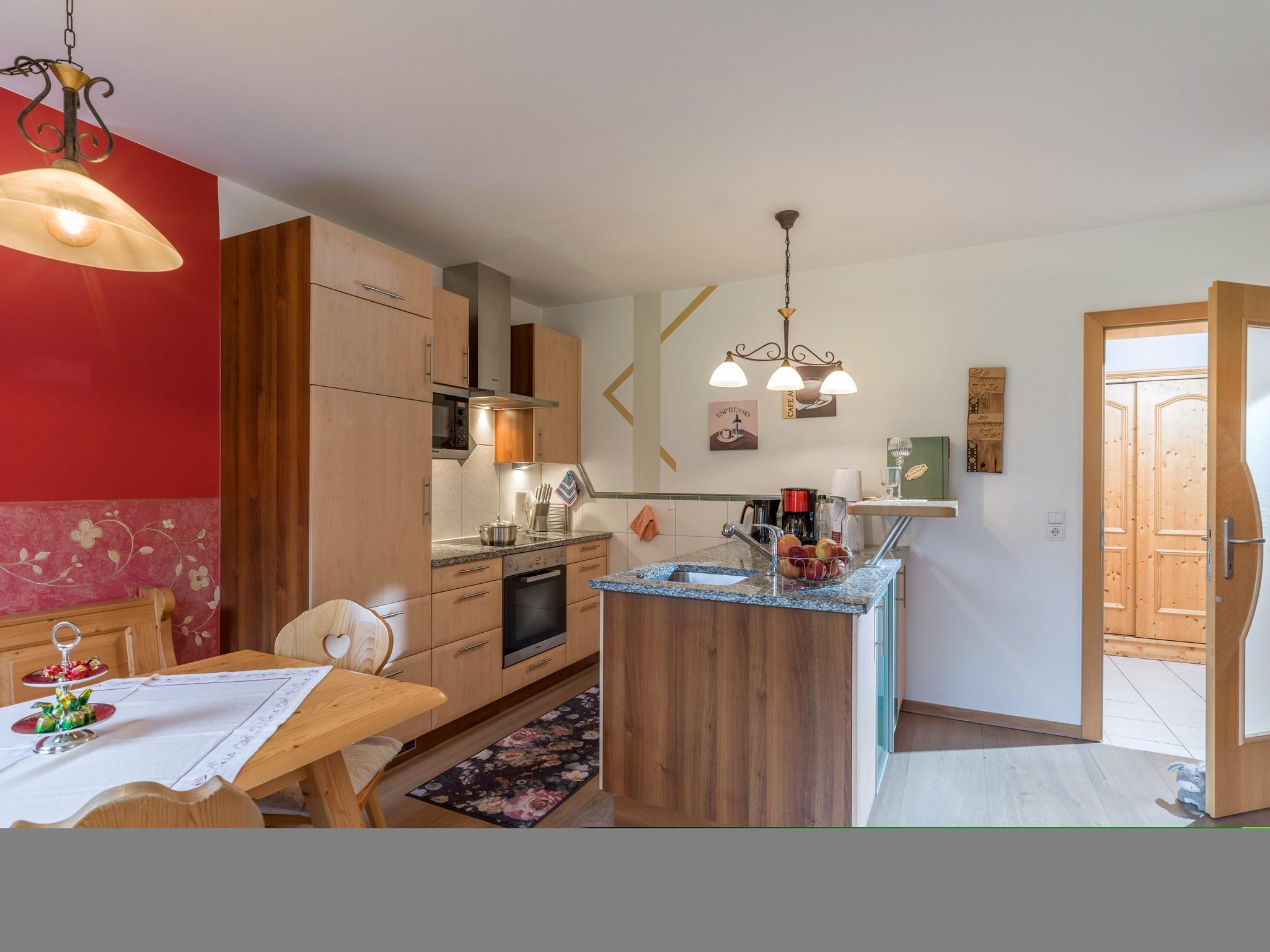 Im Appartment Wilder Kaiser sind zwei Doppelzimmer mit offenen Fußteil und eine gemütliche Wohn-Küche, ein Bad und ein separates WC entstanden sowie ein sonniger Balkon, Palkplatz .