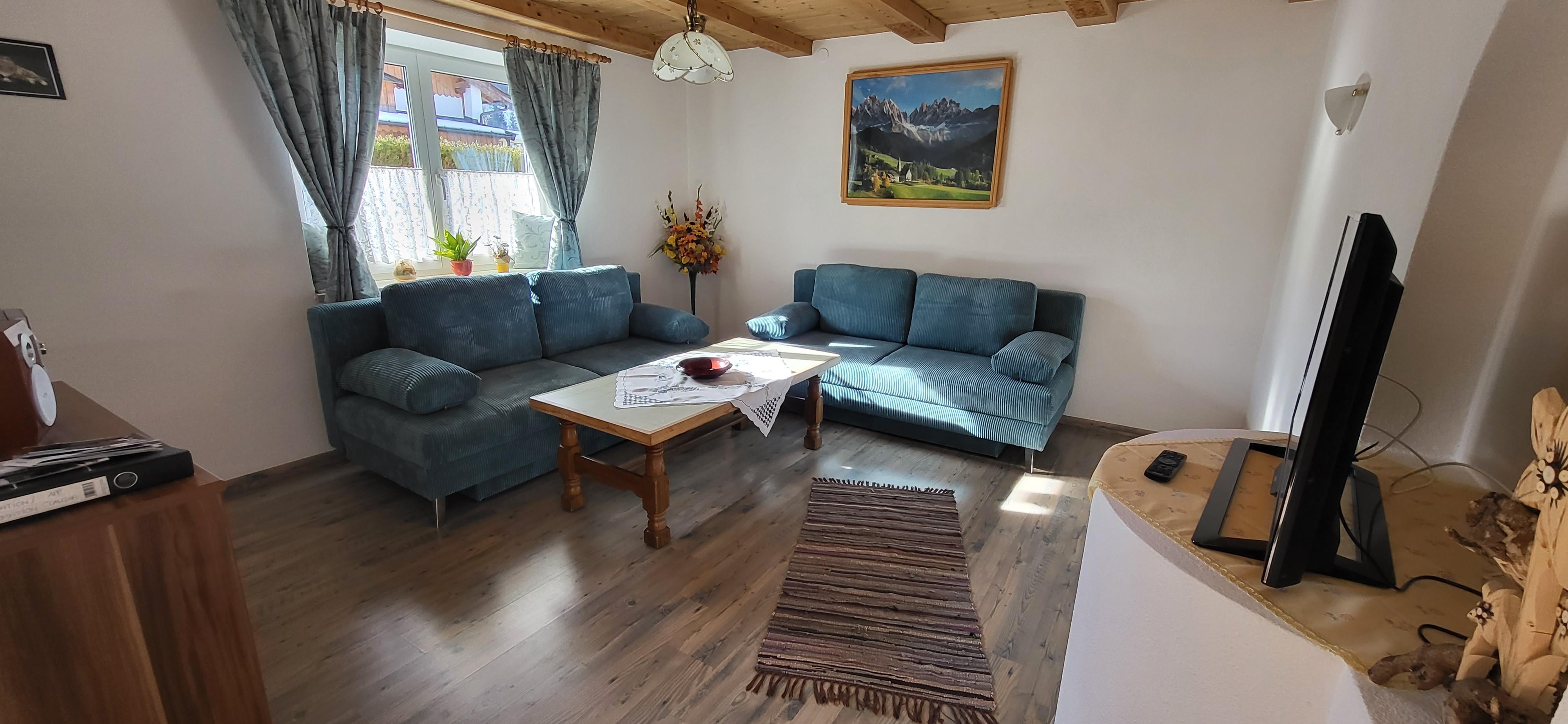 80m2 großes Appartement mit 2 getrennten Schlafzimmern; vollausgestattete Küche mit E-Herd, Ceranfeld, Backrohr, Mikrowelle, Geschirrspüler, Kühlschrank, Kaffeemaschine, Wasserkocher, Eierkocher, Toaster, etc.; Wohnzimmer mit 2 Sofas, die schnell und einfach zu Doppelbetten umfunktioniert werden können; Badezimmer mit Badewanne, Duschkabine, Waschbecken, Handtuchtrockner, Fön und WC; Abstellraum mit Kleiderhaken, Regal und Vorrichtungen für die Mülltrennung; das Appartement liegt ebenerdig.