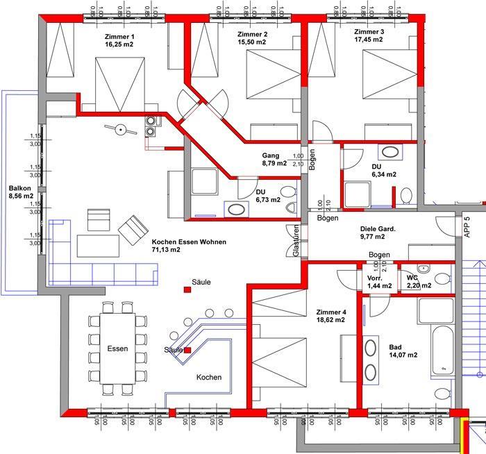 Neues, modernes Appartement 180m2. 4 Schlafzimmern und Zusatzbetten, W-Lan in jedem Zimmer.