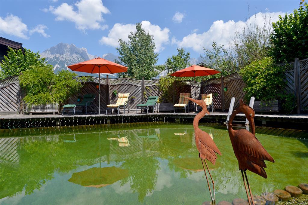 Zum Entspannen bieten wir Ihnen einen blühenden Garten mit Schwimmteich, sonniger Liegewiese und urigem Gartenhäuschen.