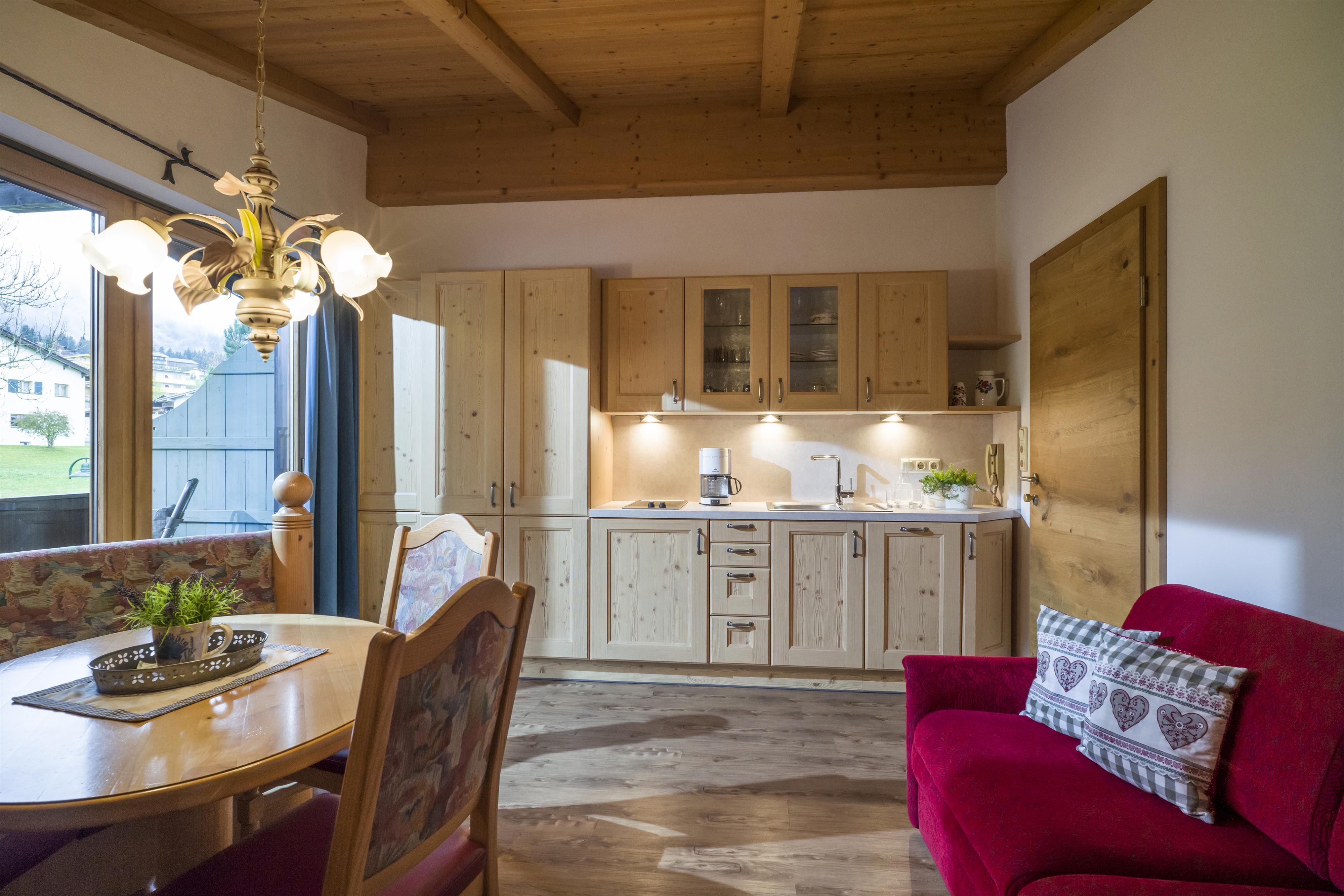 Großes heimeliges Appartement mit traumhaften Blick zum Wilden Kaiser. Das Appartement „Löwenzahn“ befindet sich im oberen Stock und verfügt über zwei Schlafzimmer (1x Doppelbett, 2x Einzelbett), einer gut ausgestattete Küche und einem gemütlichem Wohnbereich. Badezimmer mit Dusche und WC.