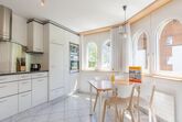 Die große separate Küche mit einem kleinen Esstisch ist gut ausgestattet mit Keramikkochfeld, Backofen, Kühlschrank, Geschirrspüler, Mikrowelle, Filterkaffeemaschine, Wasserkocher und einem Fondue-Set. Die Küche ist vollständig für die Ferien ausgestattet, einschließlich Küchenwäsche.