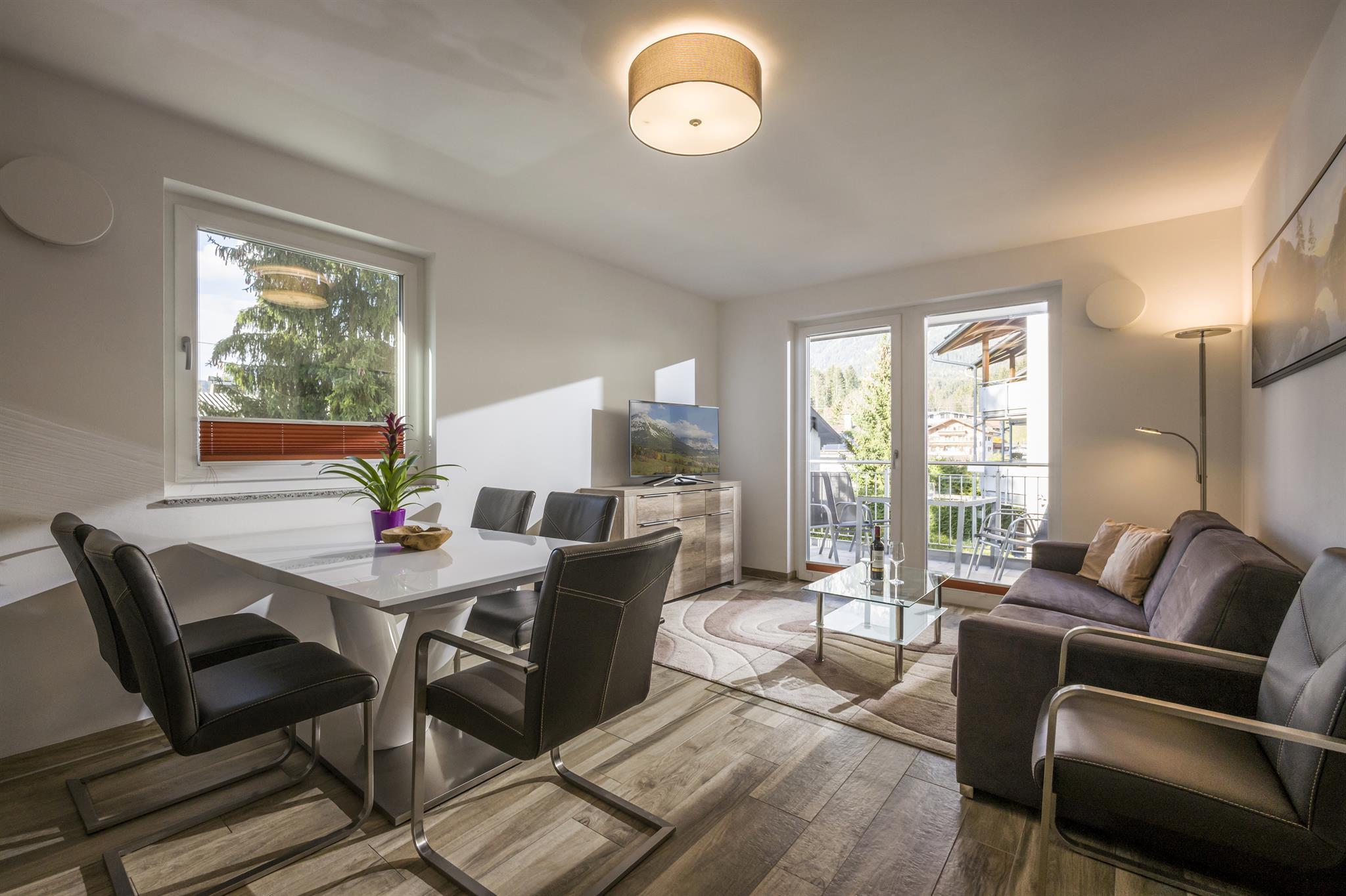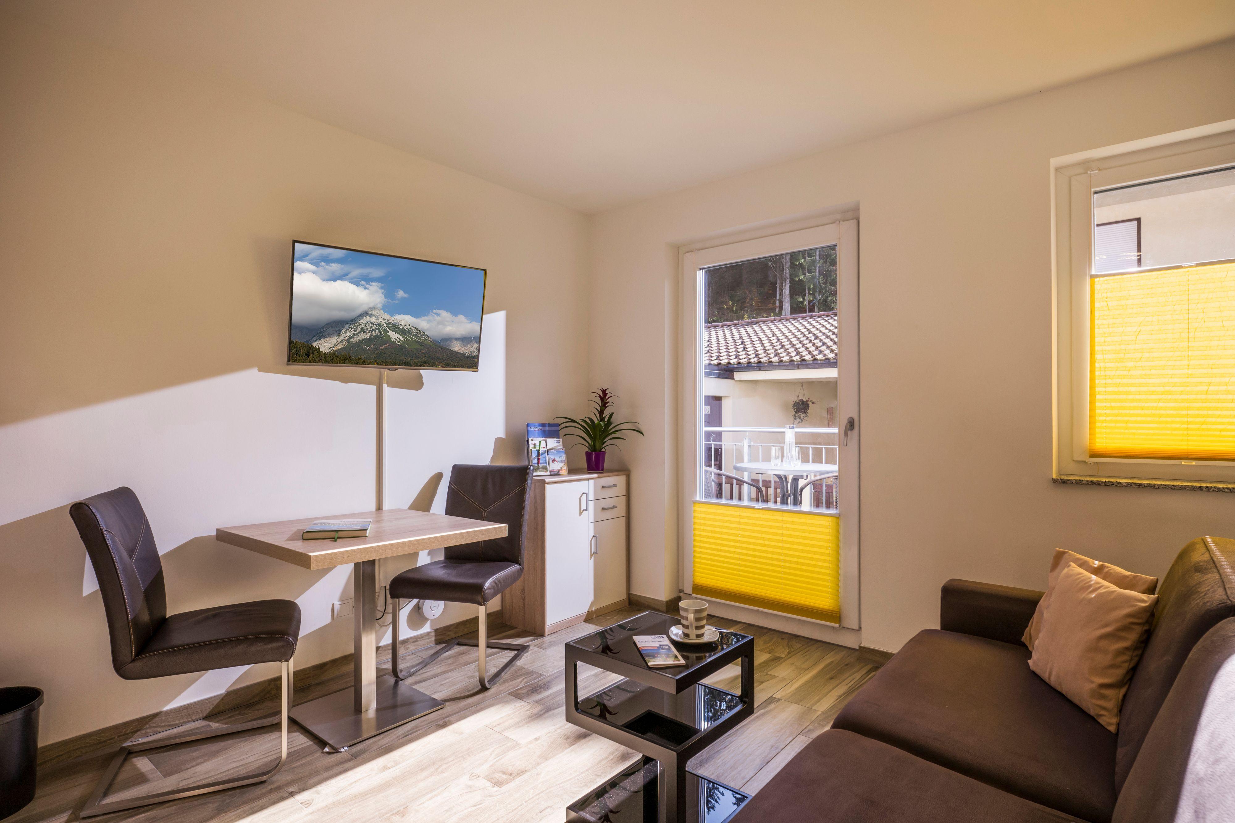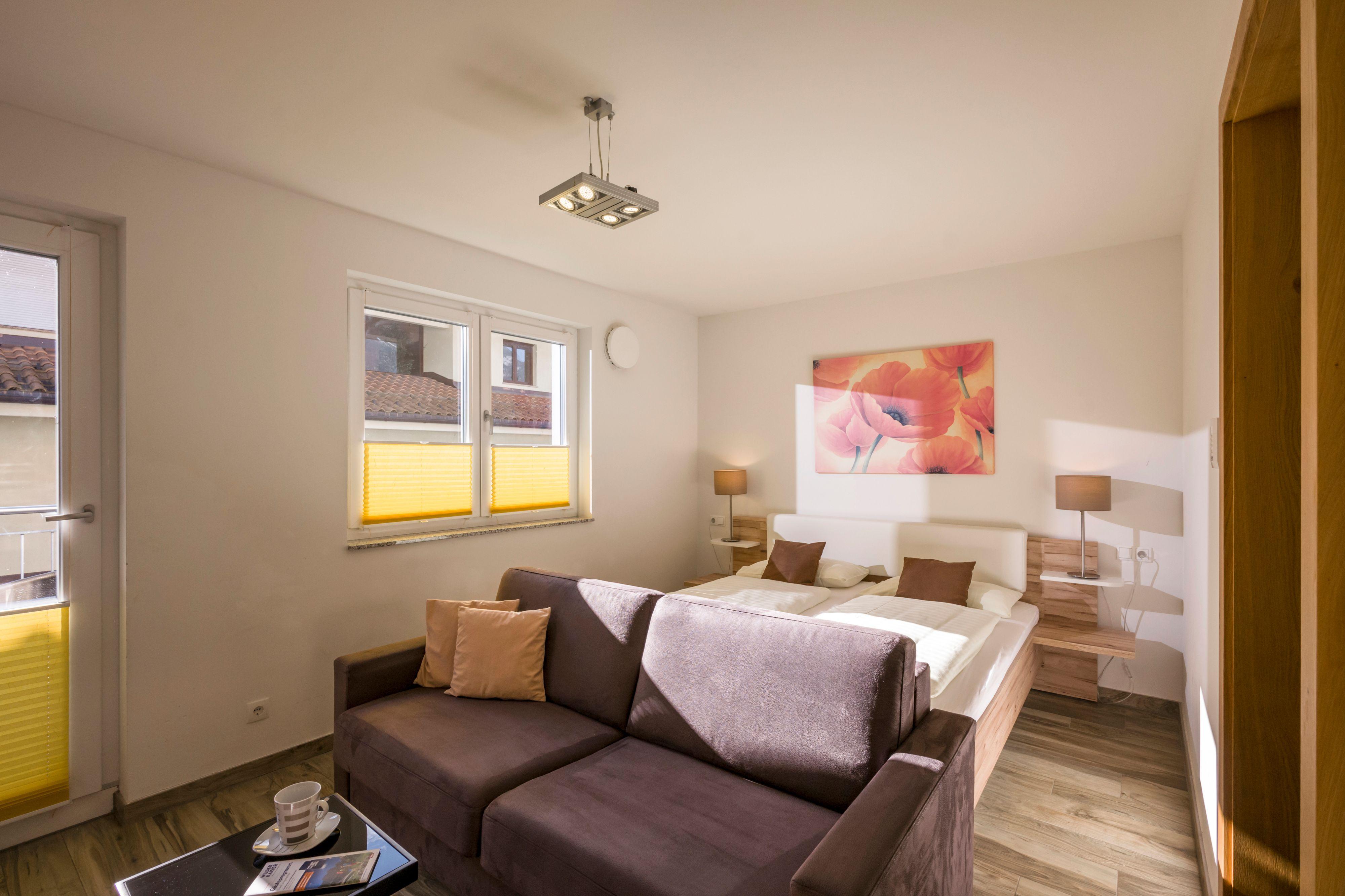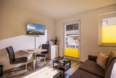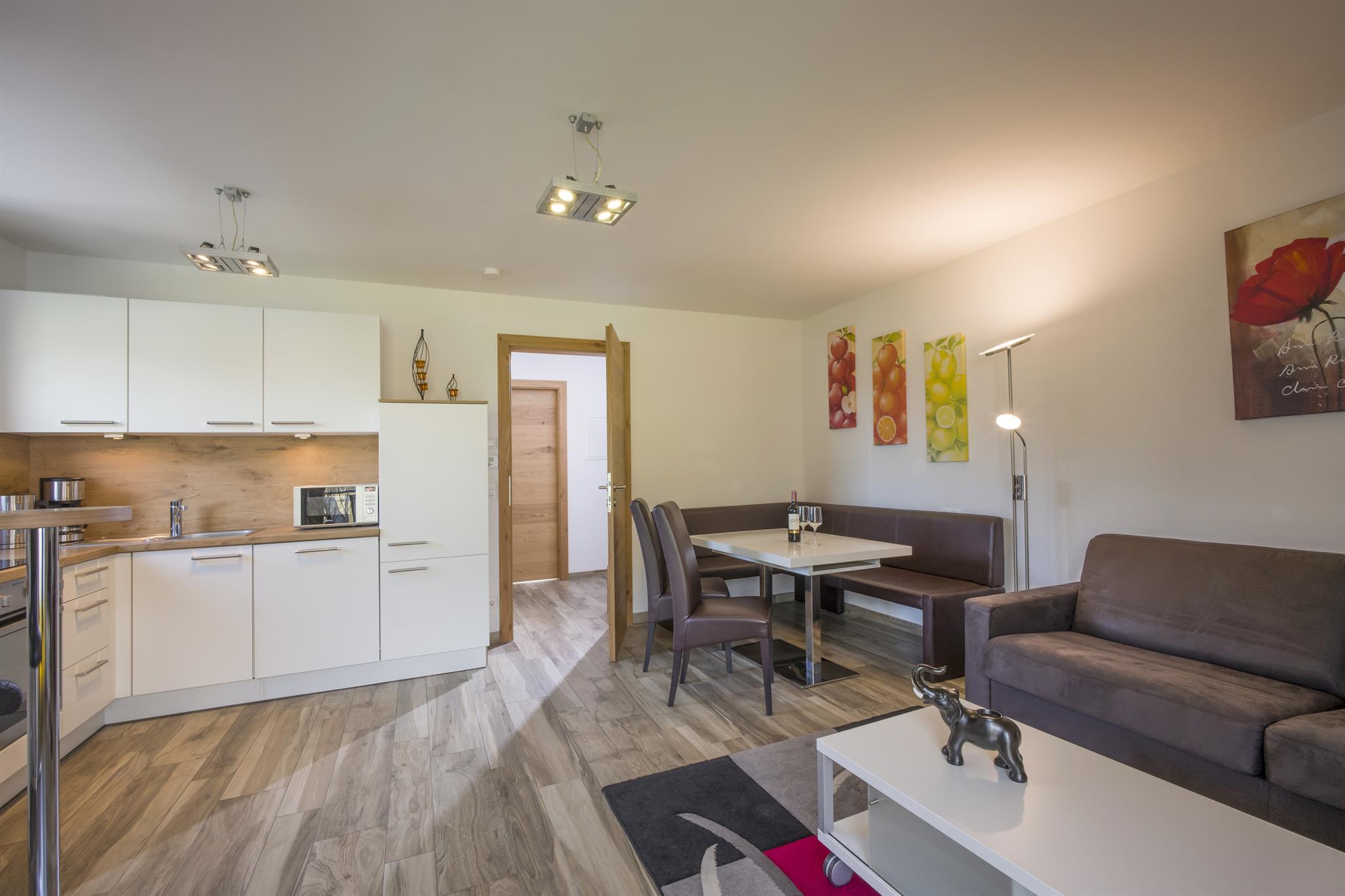 Ruhiges Studio-Appartement mit kombiniertem Wohn-/Schlafraum, Balkon sowie Badezimmer mit Dusche/WC. Das Appartement verfügt über eine gut ausgestattete Küchenzeile mit Kochfeld, Mikrowelle und Kühlschrank sowie Ess- und Kochgeschirr. Es bietet ein komfortables Doppelbett und eine Doppelschlafcouch. Ideal für 2 Personen; die Doppelschlafcouch kann zusätzliche Gäste beherbergen, engt jedoch das Apartment etwas ein. Eingeschränkter Blick auf die nahe Skipiste. Bettwäsche und Handtücher vorhanden.