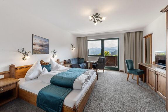 Das sonnige und elegante Doppelzimmer Hohe Salve auf der Südseite eignet sich perfekt für Paare und Familien. Das Zimmer bietet ausreichend Platz und ist mit einem bequemen Doppelbett sowie einer gemütlichen Sitzgelegenheit ausgestattet, die auch als Schlafsofa genutzt werden kann. Die Einrichtung schafft eine entspannende Atmosphäre, die Ihren Aufenthalt zu einem unvergesslichen Erlebnis macht.