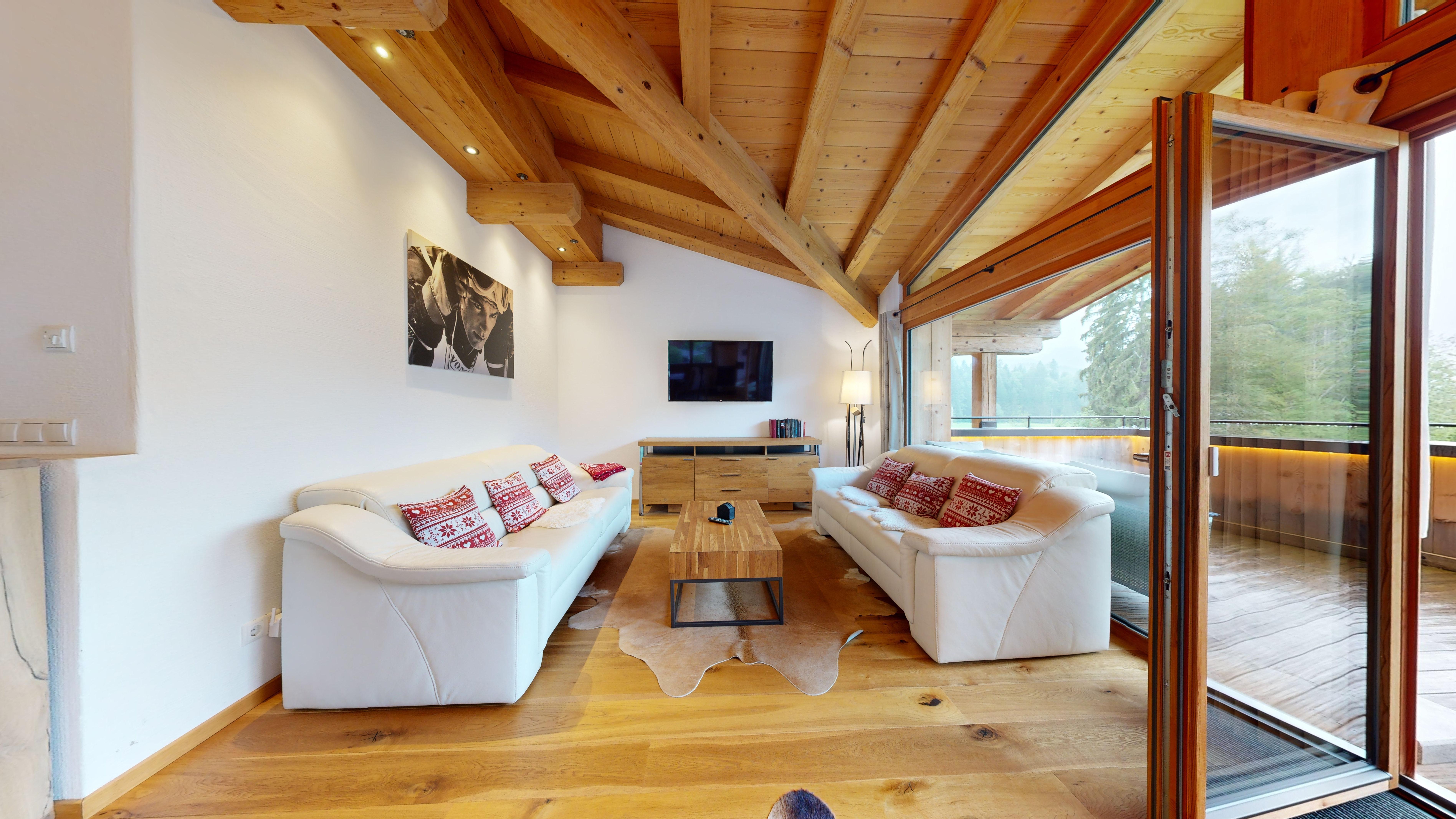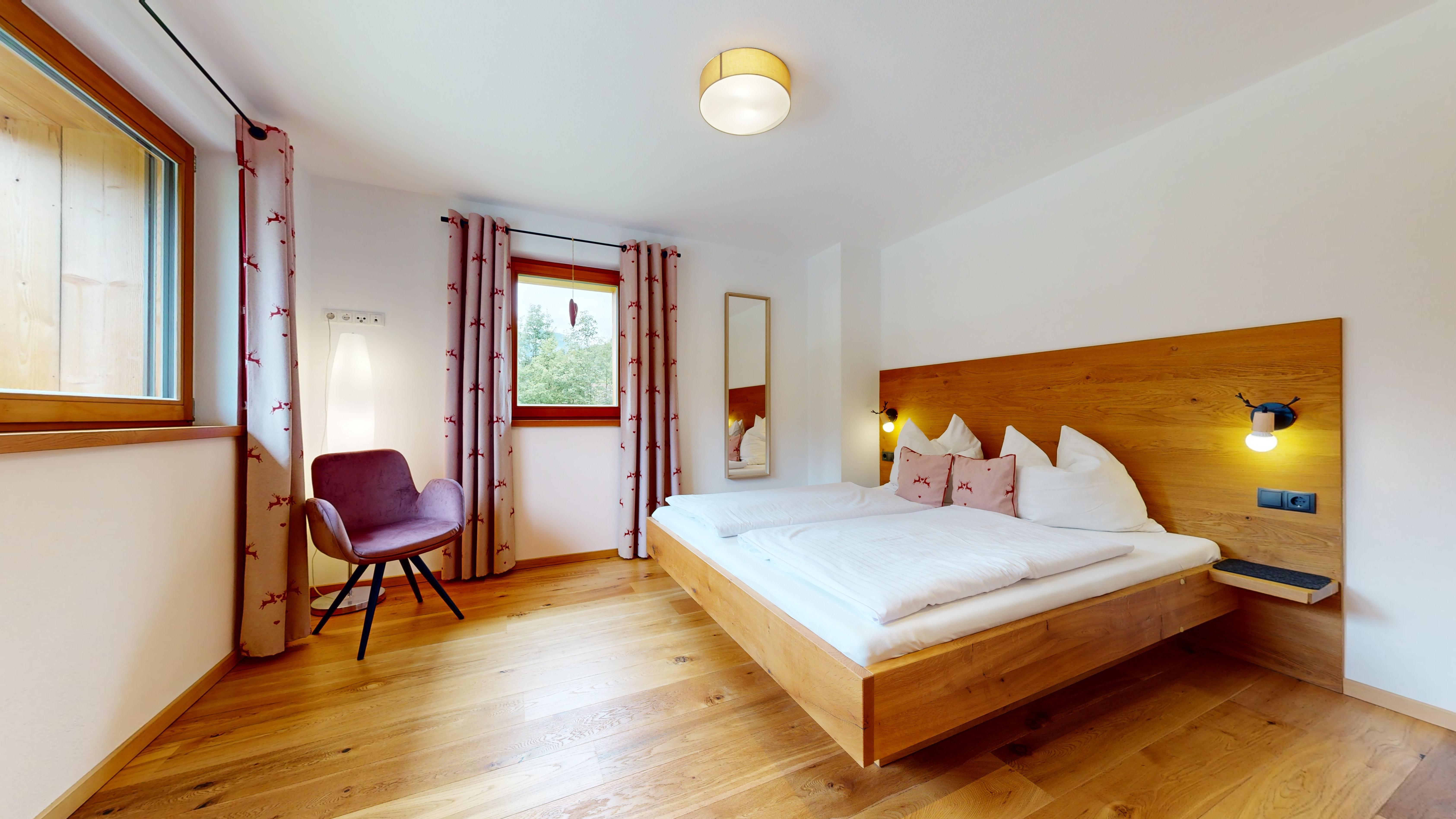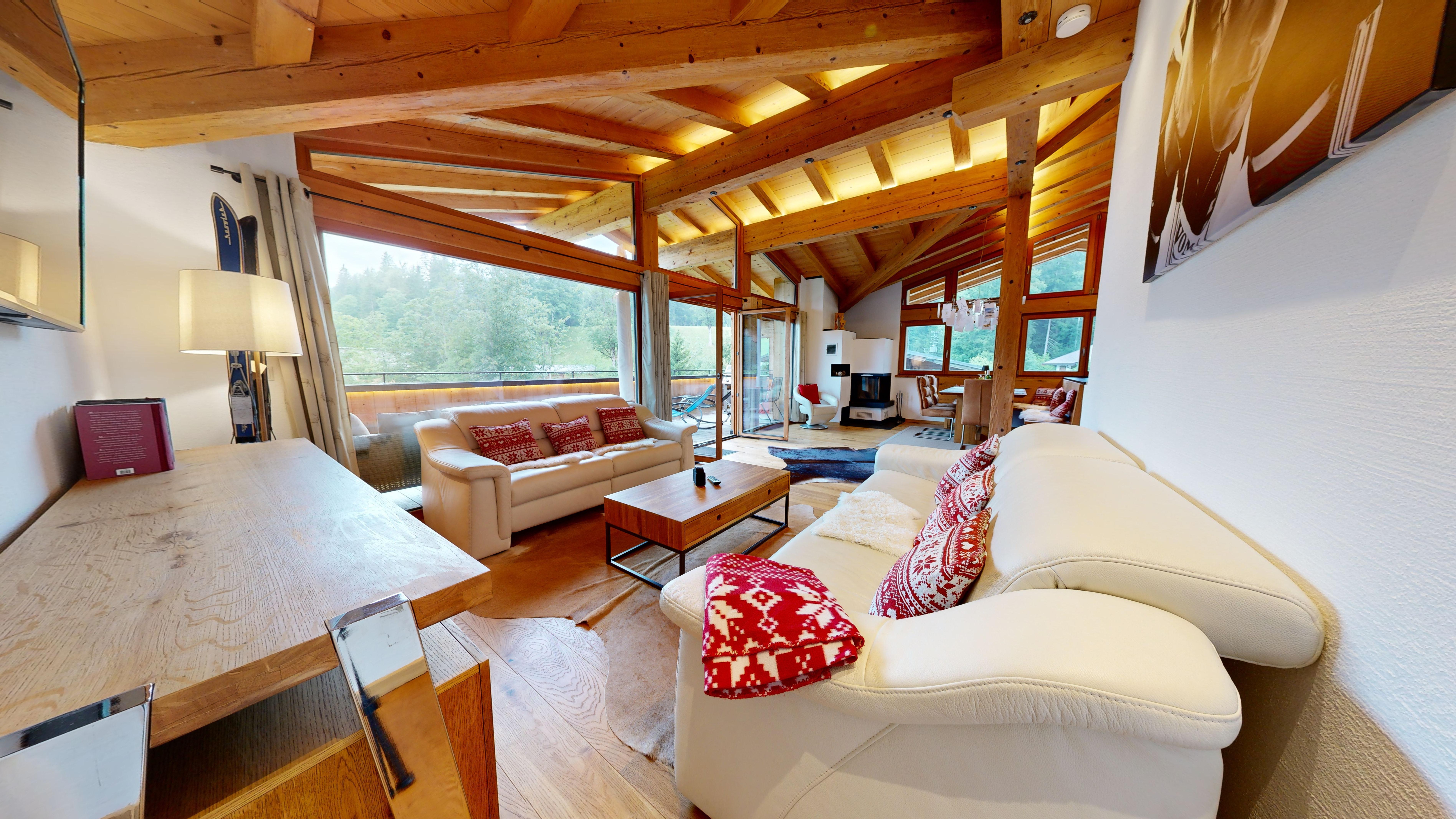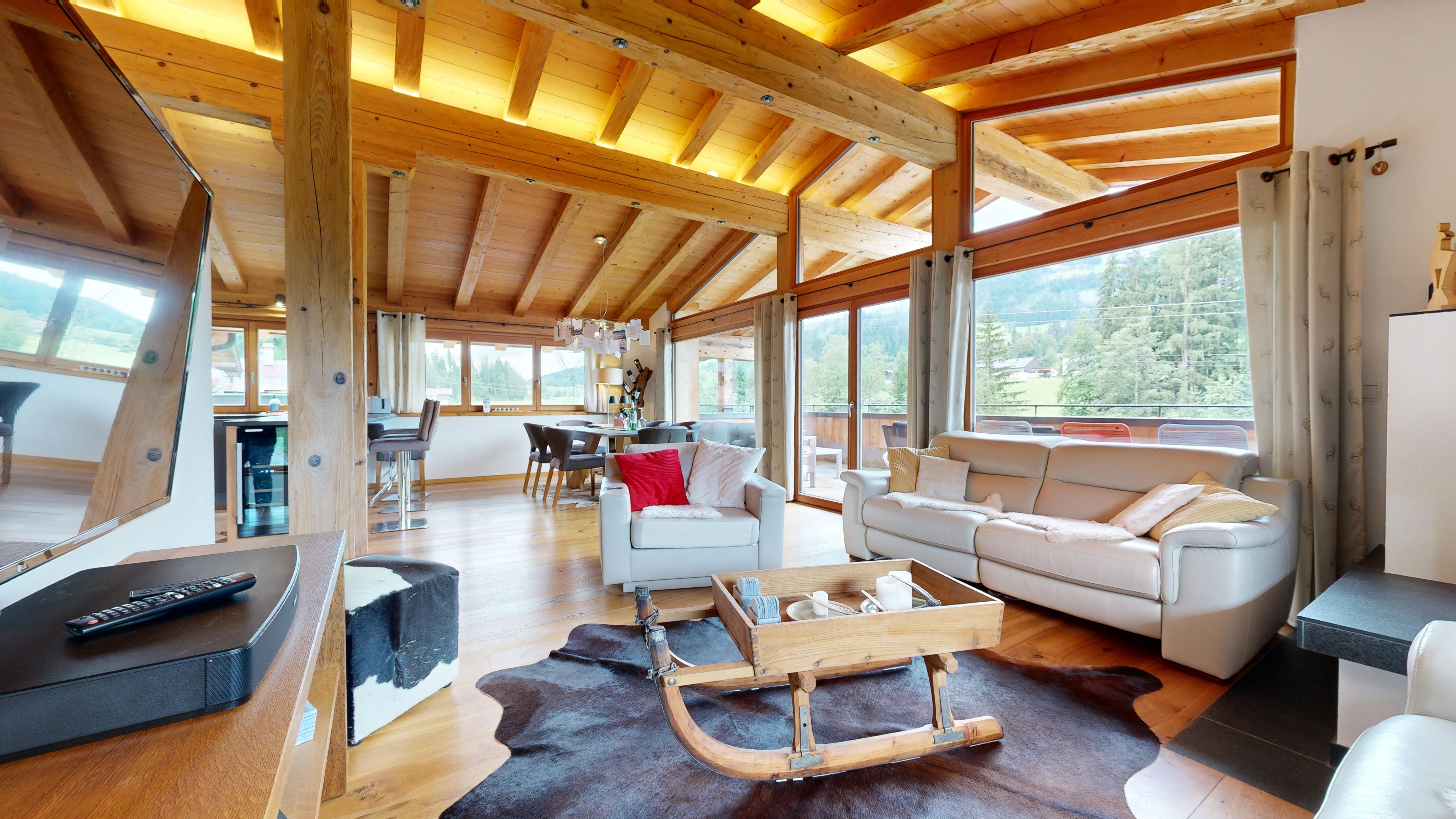 Hochwertig, aber gleichzeitig gemütlich eingerichtet kann man hier entspannen, relaxen in der Infra-Rot Sauna, sonnenbaden auf dem Balkon oder mit Freunden und Familie im geräumigen Wohn-Ess-Bereich den Tag ausklingen lassen. Wir haben das Haus selbst gebaut und auf Luxus wertgelegt. Die Böden sind mit Vollholz-Eichendielen ausgelegt, die Küchen mit Granitplatten ausgestattet und die Infra-Rot Saunen mit Zirbenholz ebenso wie die Betten extra vom Schreiner angefertigt.