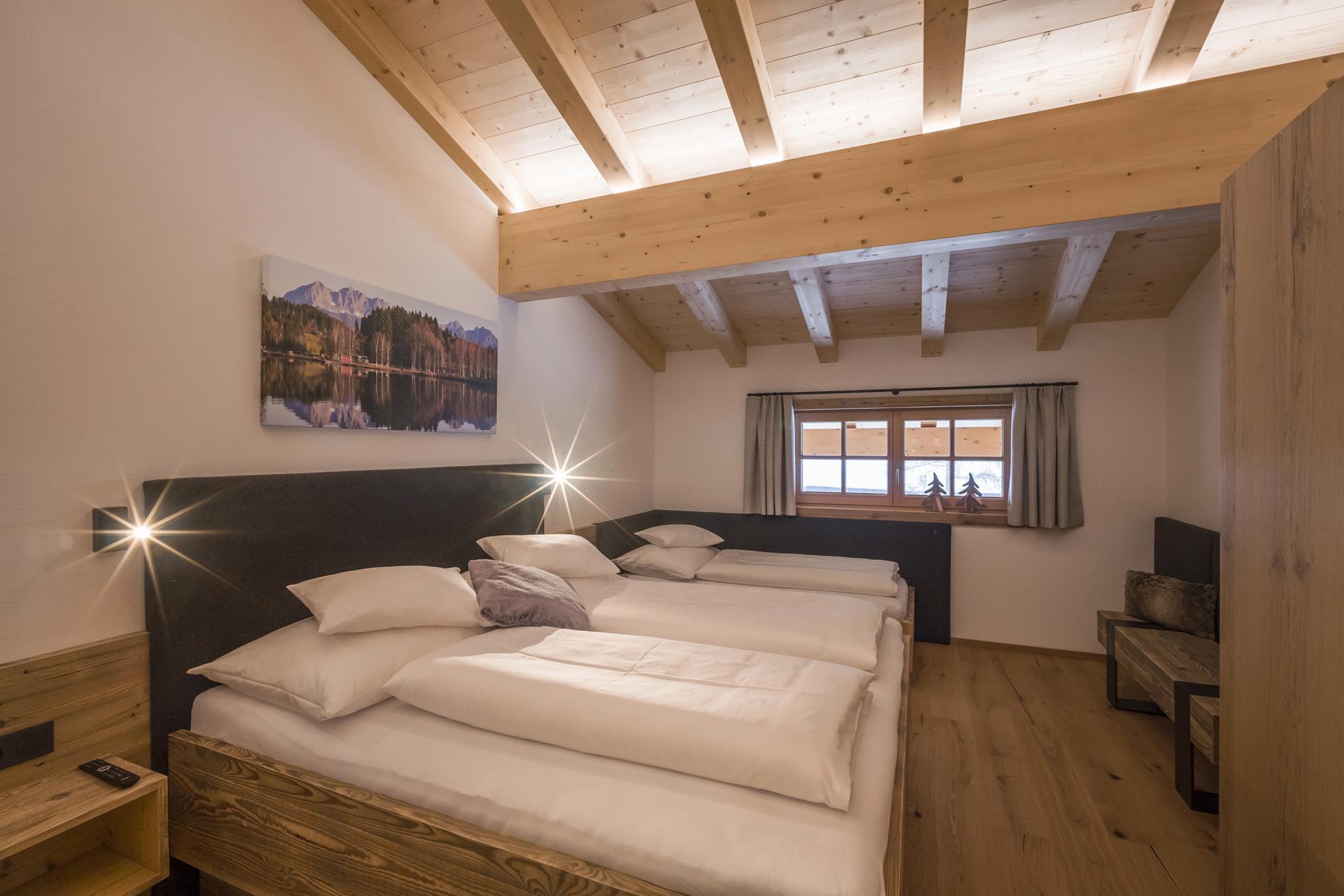 2 romantische Schlafzimmer – eingerichtet in Alt- und Eichenholz – bescheren Ihnen einen erholsamen Schlaf. Die hohen Betten (teilweise in Zirbenholz) bieten höchsten Schlafkomfort und lassen durch den angenehmen Zirbenduft die Nacht zur Traumnacht werden.