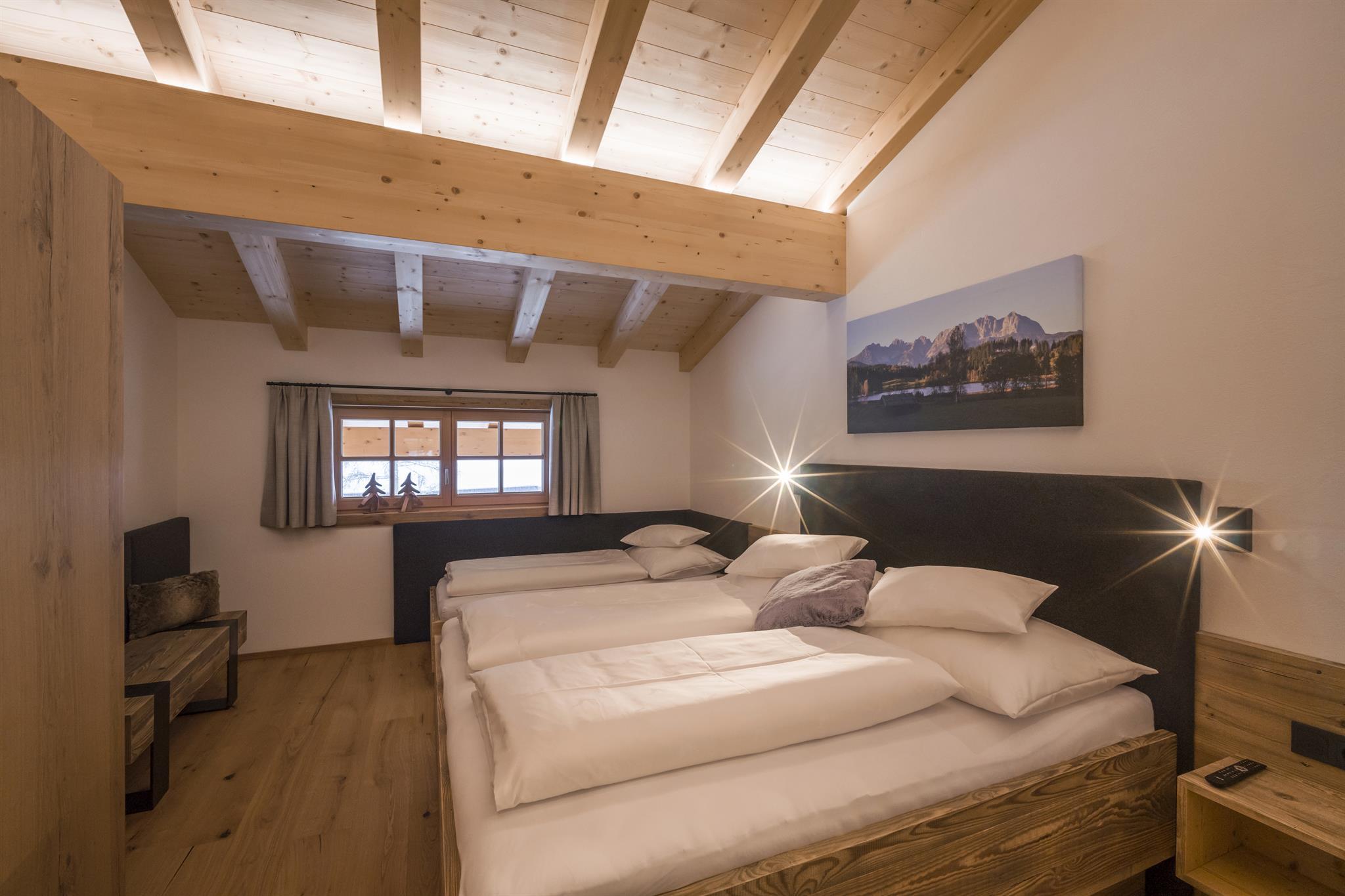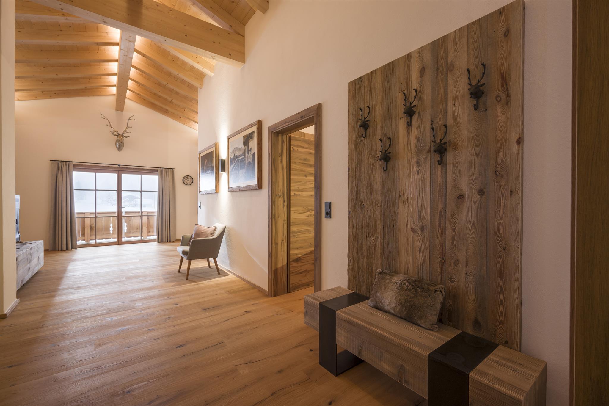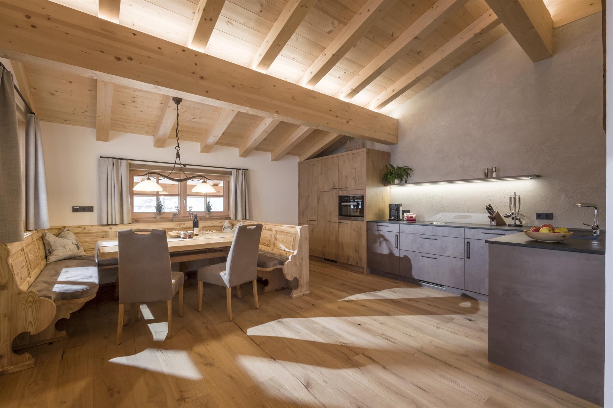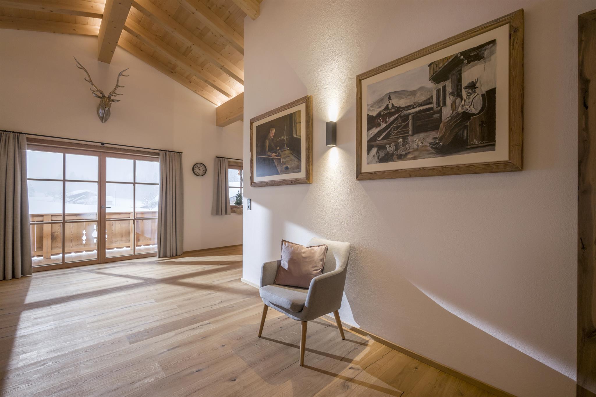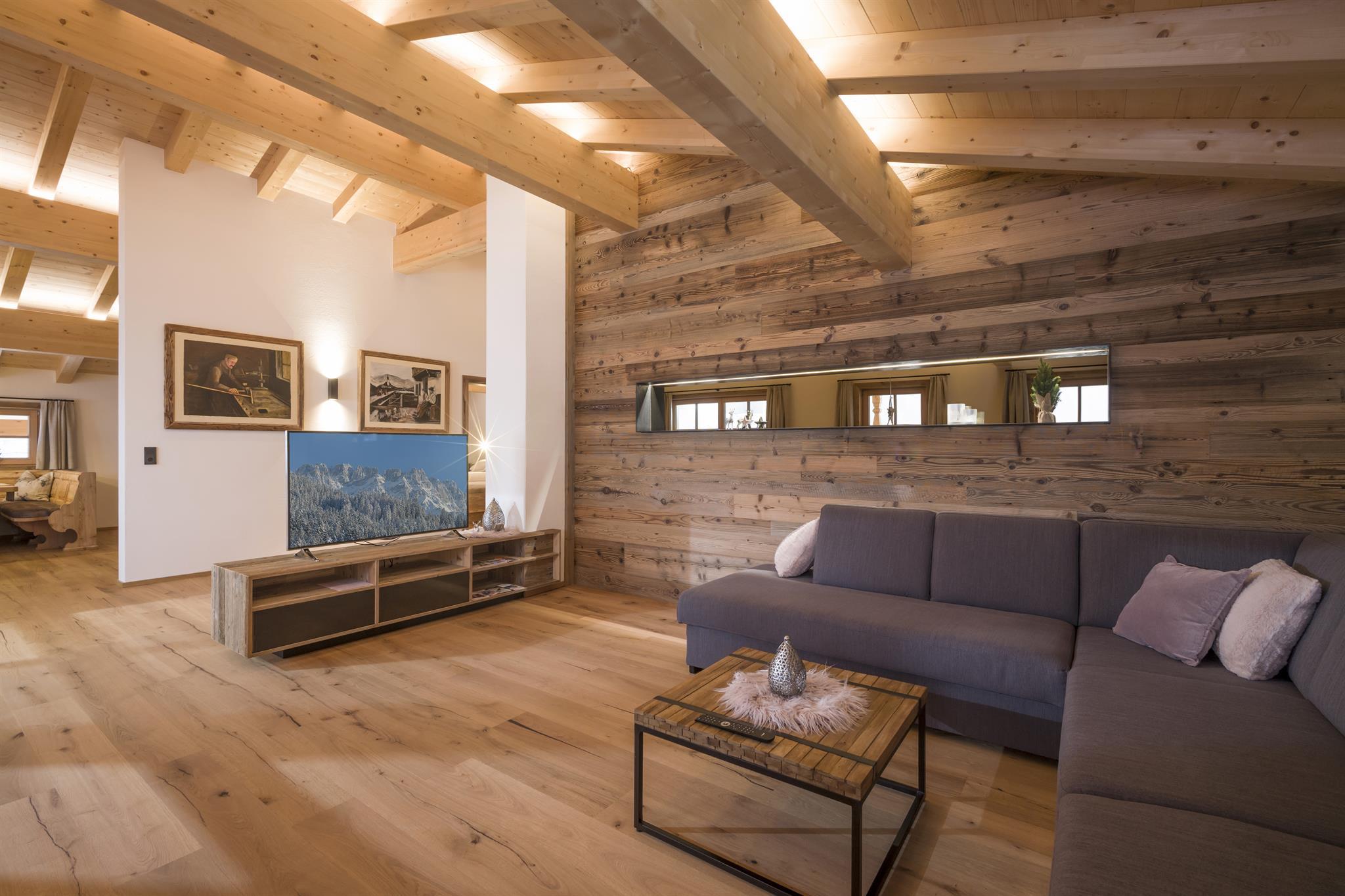 Nehmen Sie sich eine Auszeit am Wilden Kaiser! Inmitten der wunderschönen Tiroler Bergwelt liegt unser neu errichtetes Dachgeschoss-Appartement „Hoamatgfühl“. Mit einer Größe von 120 m² bietet das äußerst geräumige und hochwertig eingerichtete Appartement Platz für 2-8 Personen. Wir legen höchsten Wert auf das Naturprodukt Holz. Aus diesem Grund ist der gesamte Bereich mit Echtholzboden ausgestattet. Exklusive Möbel aus Altholz kombiniert mit anderen Hölzern und Materialien sowie der edle Sichtdachstuhl vermitteln einen unvergesslichen Charme und machen Ihren Urlaub zu einem besonderen Erlebnis. Für eine wohltuende Wärme sorgt eine Fussbodenheizung im gesamten Bereich. Die Beleuchtung mit vielen LED-Elementen vermittelt eine wunderbare Stimmung und sorgt für eine besondere Gemütlichkeit. Luxuriöse Bilder bestätigen den heimeligen Charakter und die Liebe zum Detail!